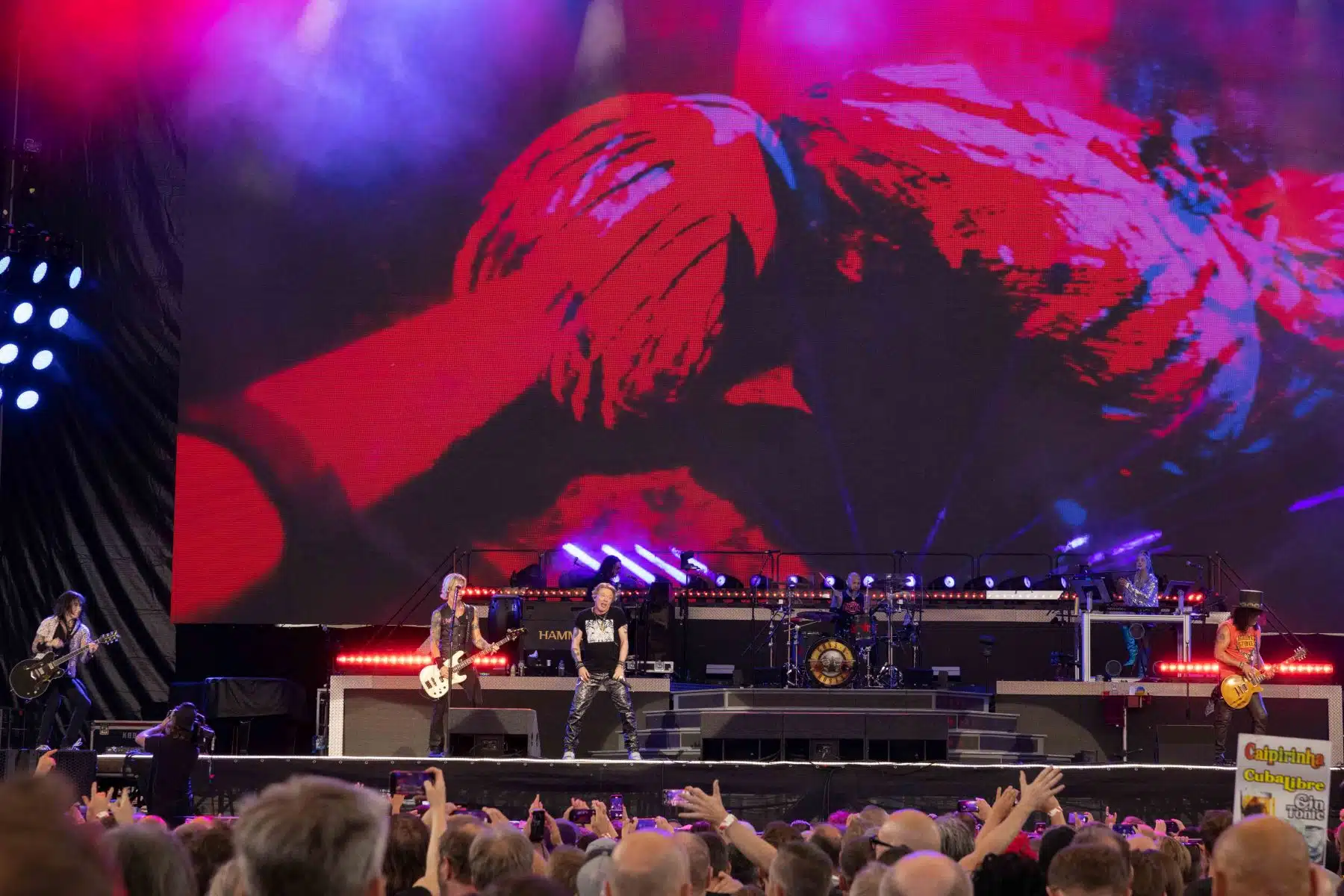 Die Bühnenshow war spektakulär und beeindruckend. Massive Videowände, Feuerfontänen und spezielle Lichteffekte sorgten für eine mitreißende Atmosphäre. Die Bandmitglieder zeigten eine beeindruckende Bühnenpräsenz und wirkten dabei sowohl eingespielt als auch erfrischend spontan. Axl Rose bewegte sich mit seiner charakteristischen Eleganz über die Bühne und fesselte das Publikum mit seiner Ausstrahlung. Es war deutlich zu spüren, dass die Bandmitglieder nicht nur ihre Songs spielten, sondern diese auch mit einer Leidenschaft und Freude darboten, die das Publikum mitriss.