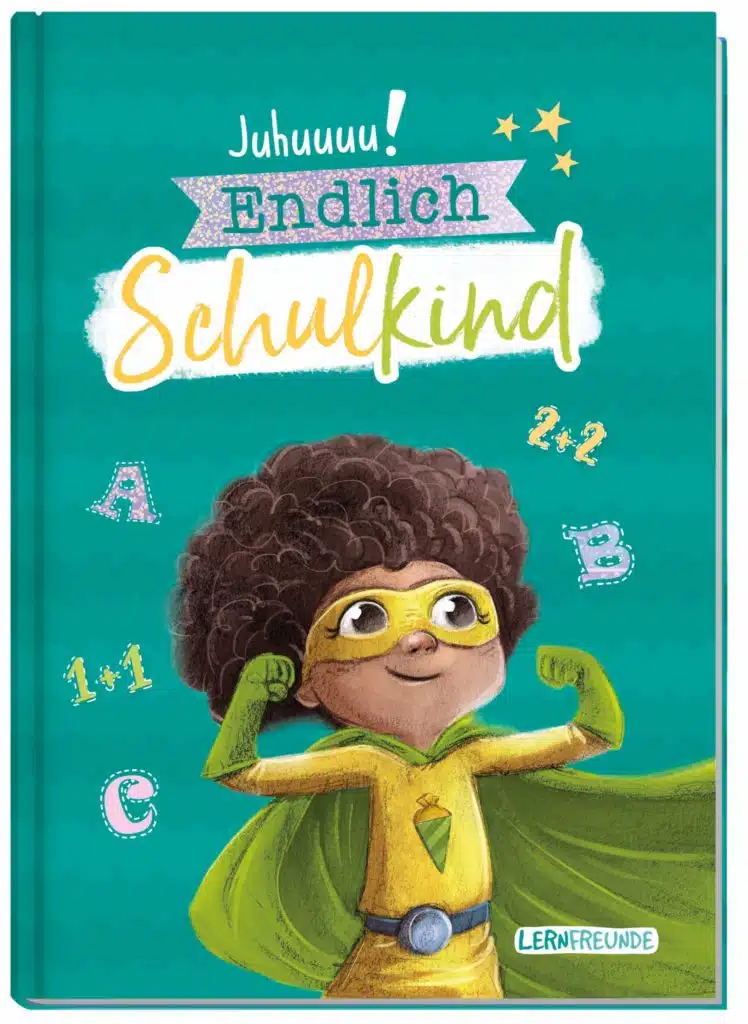 Mit der Einschulung beginnt für die Kleinen eine aufregende Zeit. Im Einschu- lungsalbum „Juhuuuu! Endlich Schulkind“ können die Eltern für ihre Kinder die- sen besonderen Anlass ideal dokumentieren: Auf 48 Seiten ist jede Menge Platz für Erinnerungen, Fotos und Zeichnungen rund um den Einschulungstag und das allererste Schuljahr. Ob Einkleben, Malen oder Aufschreiben – mit originellen Fragen und Feldern zum Ausfüllen werden die neuen Eindrücke und Erfahrungen kreativ verarbeitet und festgehalten. Eine fabelhafte Geschenkidee für die Schul- tüte und dank stabilem Hardcover und Glitzerfolie mit Hingucker-Garantie. Das A5-Erinnerungsalbum ist in den Designs Blau, Rosa und Grün erhältlich.