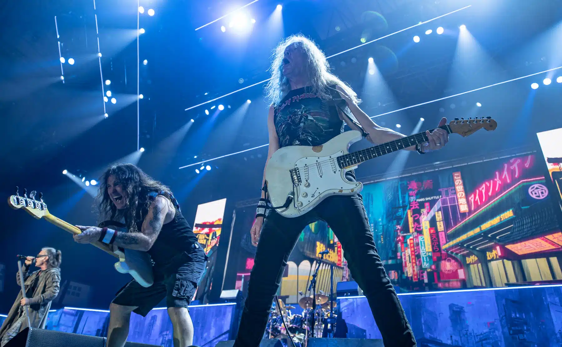Als dann endlich die lang ersehnten Headliner auf die Bühne traten, verwandelte sich die Festhalle in ein brodelndes Meer aus Headbangern und jubelnden Fans. Iron Maiden, angeführt von Frontmann Bruce Dickinson, der nach wie vor mit seiner einzigartigen Stimme beeindruckte, zeigten eindrucksvoll, warum sie zu den ganz Großen des Metal-Genres zählen.