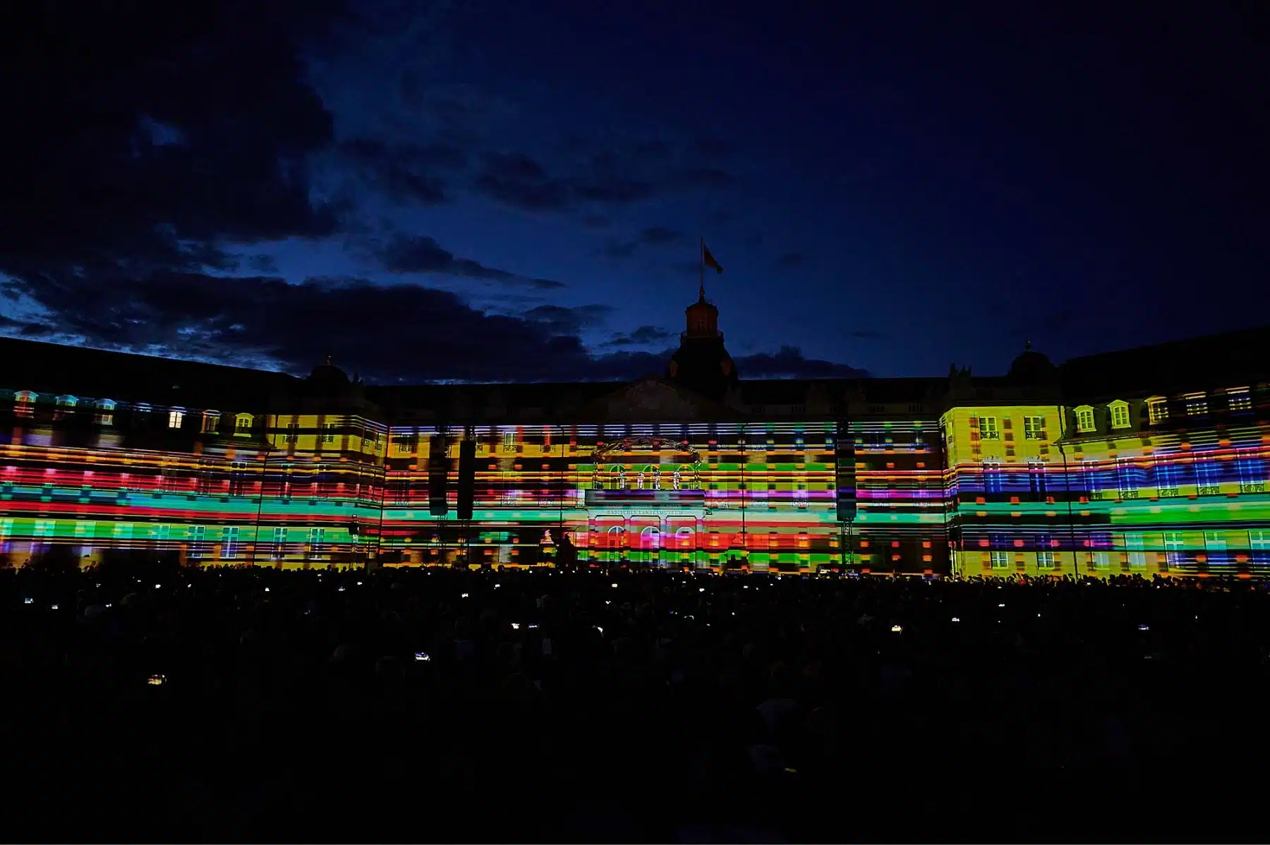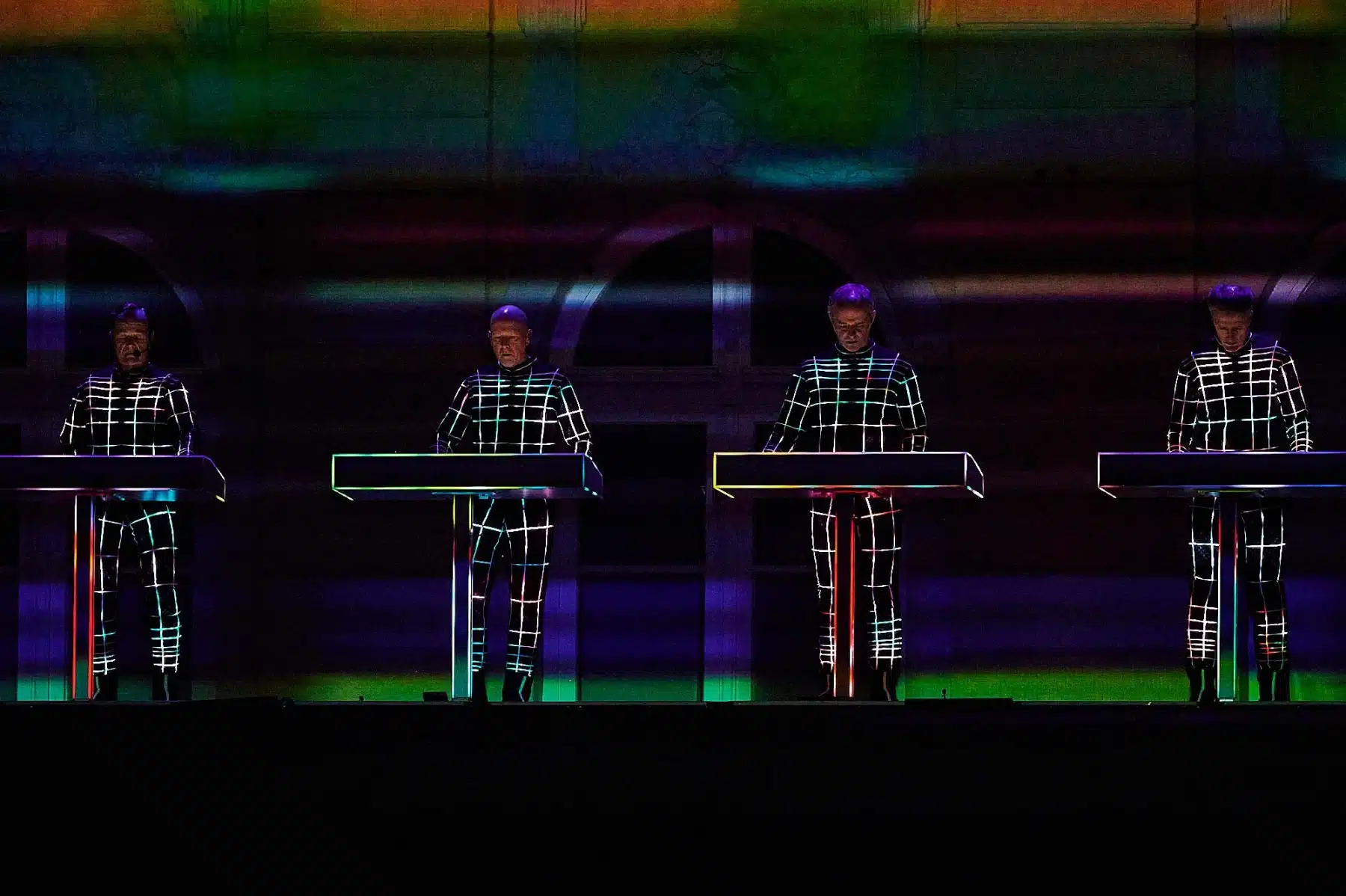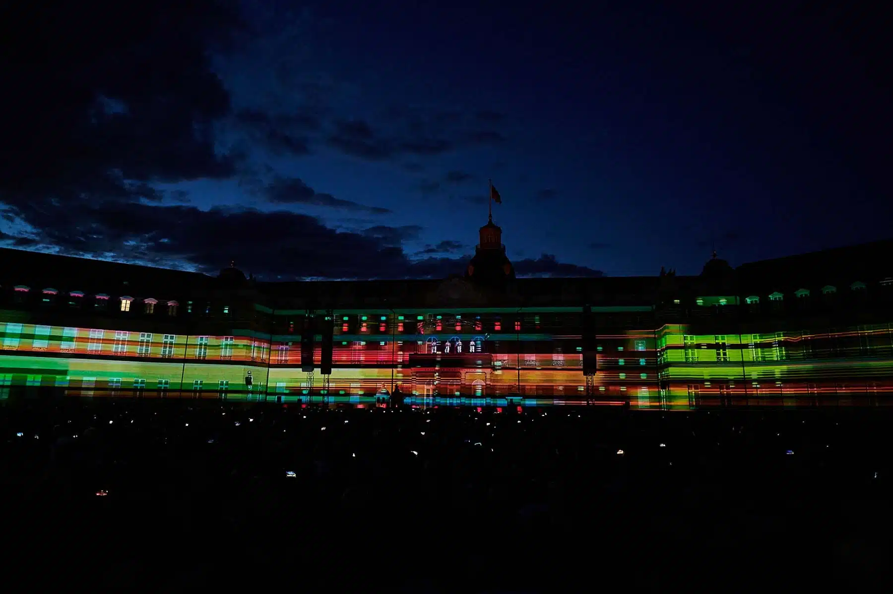 Im Rahmen der Schlosslichtspiele, die vom 16.08. bis 17.09 stattfinden, gaben sich die vier Musiker rund um Gründungsmitglied Ralf Hütter in Karlsruhe die Ehre. 16 Hochleistungsbeamer und die 170 m lange Front des Barockschlosses boten gerade genug Projektionsfläche für eine gigantische Light-Show, die ihres Gleichen sucht.