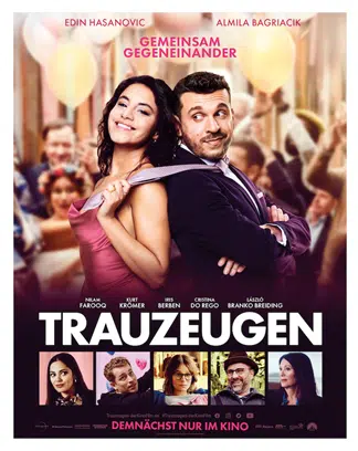 In den Hauptrollen der romantischen Komödie sind Edin Hasanovic („Rate Your Date“, „Im Westen nichts Neues“) als Jakob und Almila Bagriacik („Die Kaiserin“, „4 Blocks“) als Marie zu sehen. An ihrer Seite spielen Cristina do Rego („Türkisch für Anfänger“, „Nightlife“) und László Branko Breiding („Start the fck up“) das Brautpaar. Zum weiteren Ensemble zählen Iris Berben als Frau Dr. Kober („Traumfrauen“, „Der Vorname“), Nilam Farooq („Contra“, „Mein Blind Date mit dem Leben“), Aurel Mertz („Aurel Original“) und Kult-Comedian Kurt Krömer. Finn Christoph Stroeks & Lena May Graf geben mit TRAUZEUGEN ihr Spielfilm-Debüt.