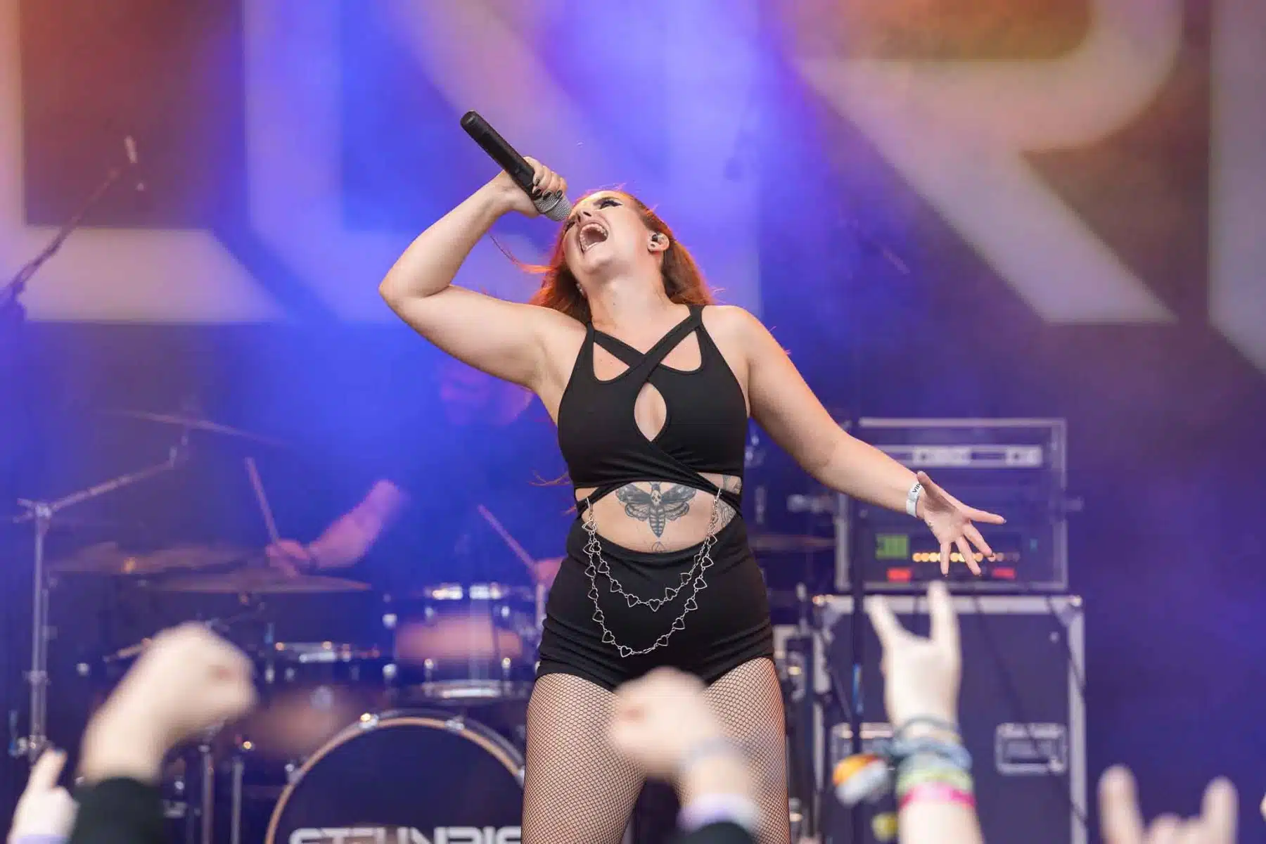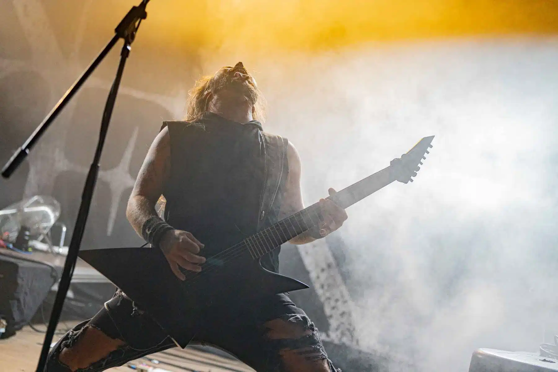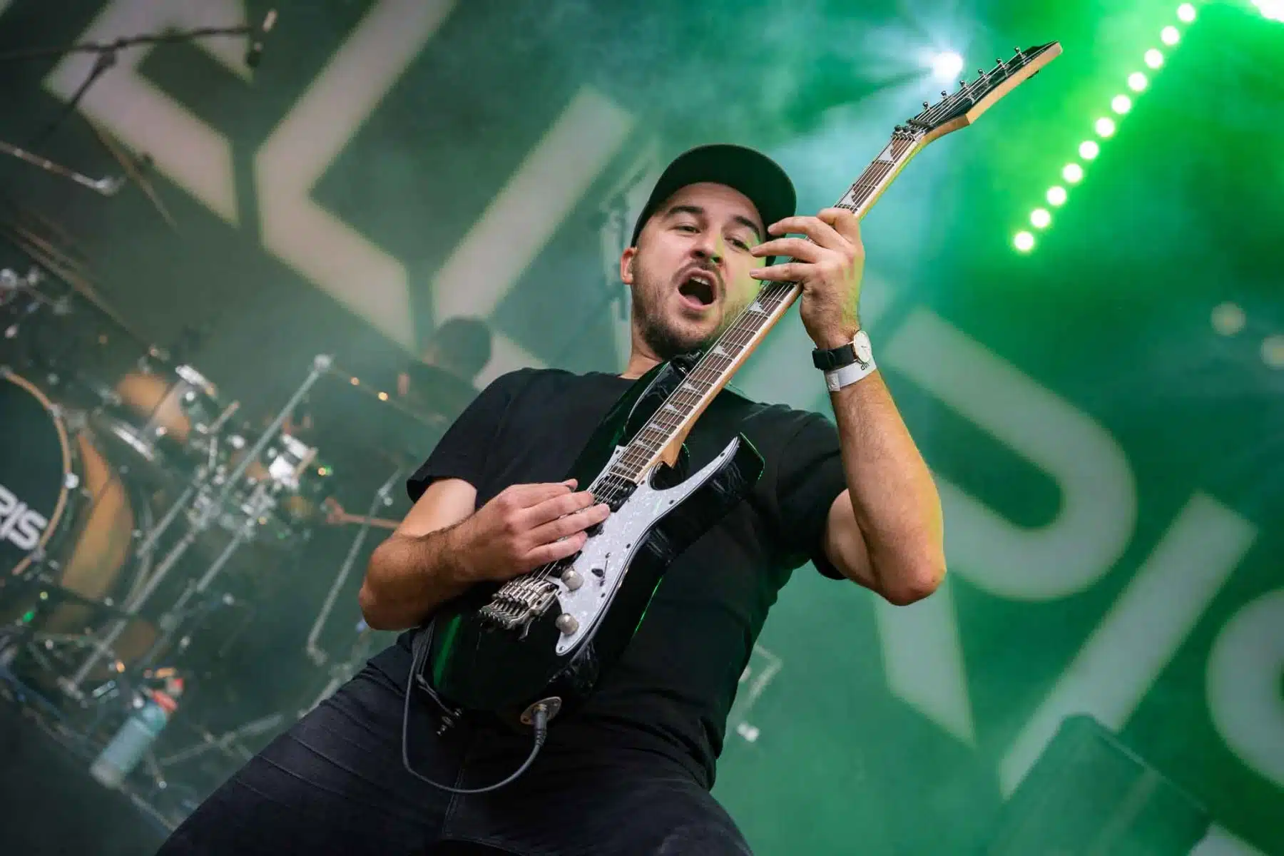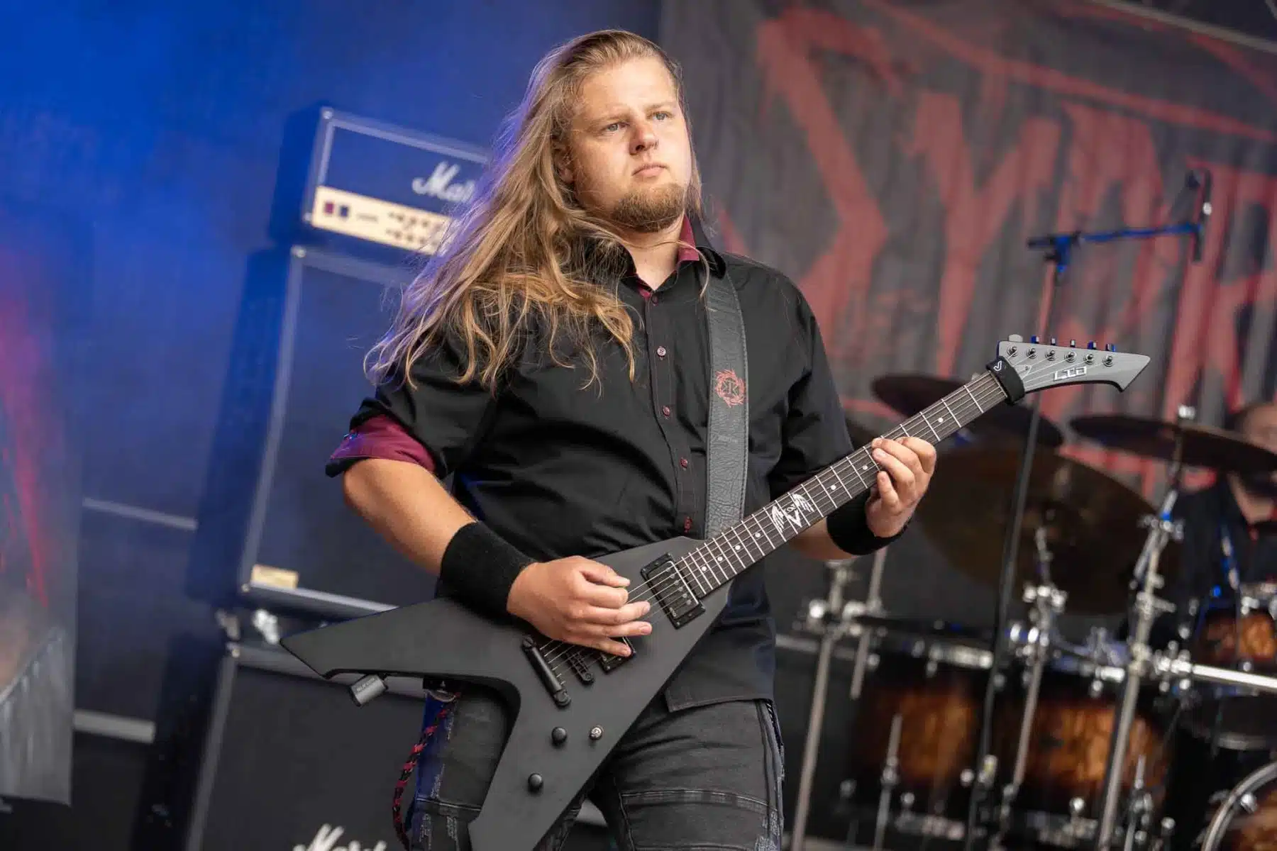 Um 17 Uhr wurden die Tore geöffnet und kurze Zeit später durften Sydra ihren ersten großen Festival Auftritt beginnen. Die Freiburger Band spielte eine Mischung aus Thrash- und Deathmetal und konnte von Anfang an einige der Besucher vor der Bühne mitreißen. Bei dem (noch) schonen Wetter wurden natürlich auch die vielen Getränke und Essensstände besucht – und auch auf dem Campingplatz ließen es sich einige Besucher gutgehen. Nach einer großzügigen Spielzeit von 40Minuten, was für eine Opener Band echt großartig ist, ging die Party erst so richtig los. Denn die tschechische Band Stellvris gab von Sekunde eins an direkt Vollgas. Mit Songs, wie „Avatar“ oder auch dem neusten Werk „Letting Go“ war von ruhig bis laut und schnell alles dabei. Frontfrau Nicol machte einen wirklich tollen Job am Gesang, besonders ihre Growls brachten den ein oder anderen Besucher zum Staunen. So war es nicht verwunderlich, dass die Band weit über zwei Stunden lang am Merchandise Stand Autogramme verteilte und Fotos mit den vielen, neu gewonnenen Fans machte. Die Musiker sind ein perfekt eingespieltes Team auf der Bühne und waren so happy, dass sie das Grinsen nicht mehr aus dem Gesicht bekamen.