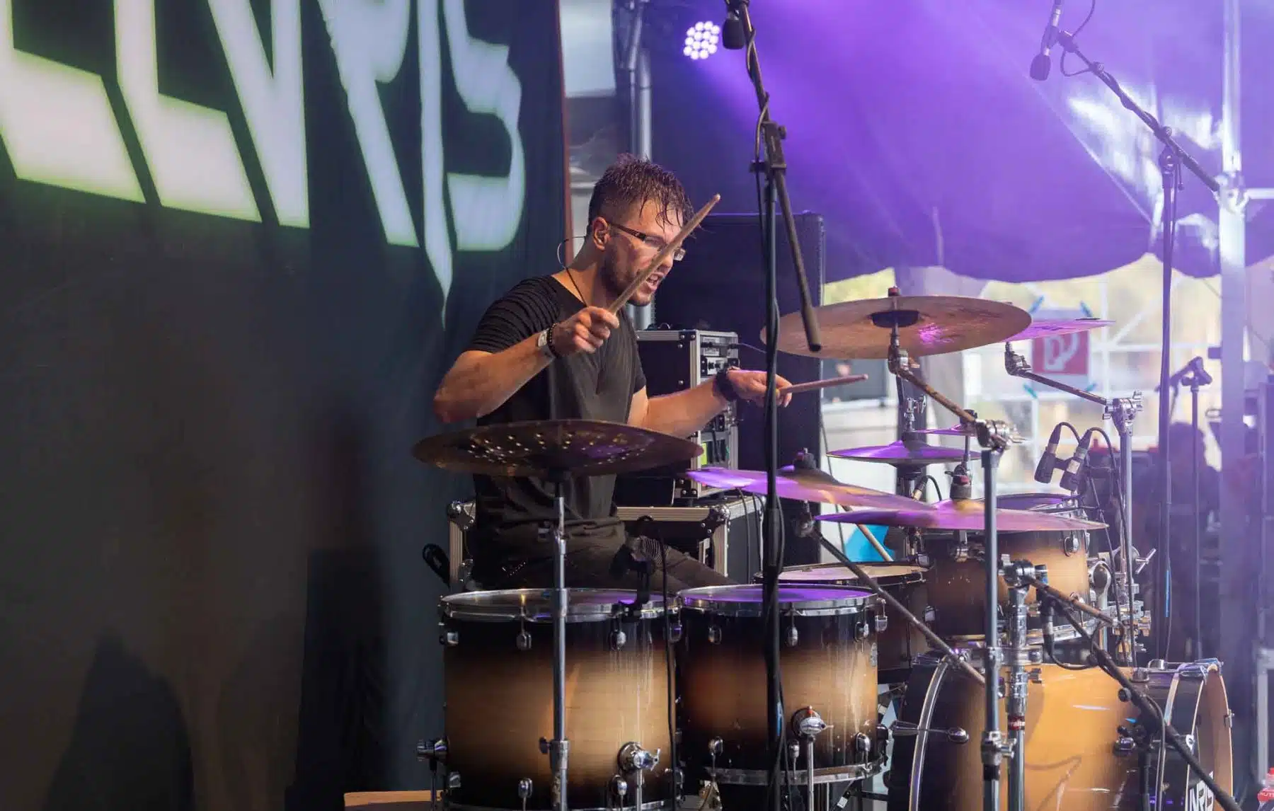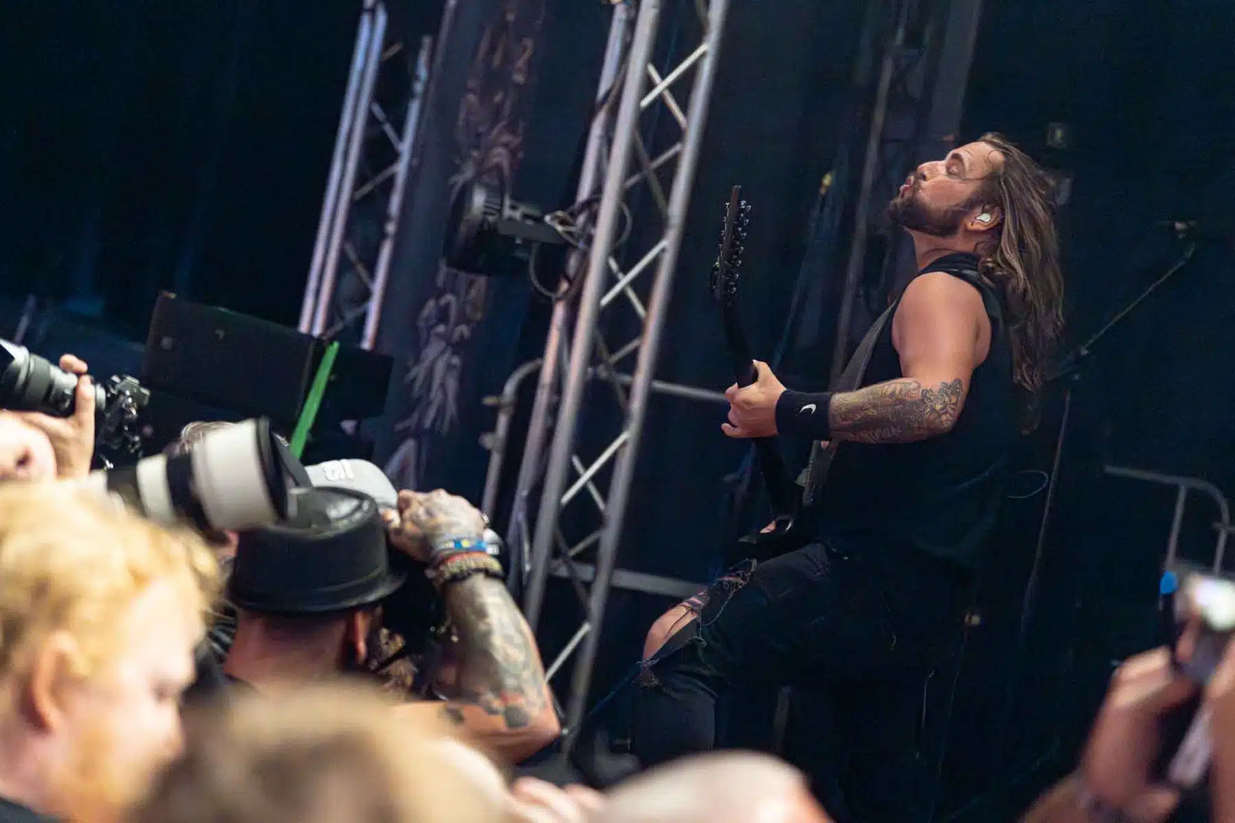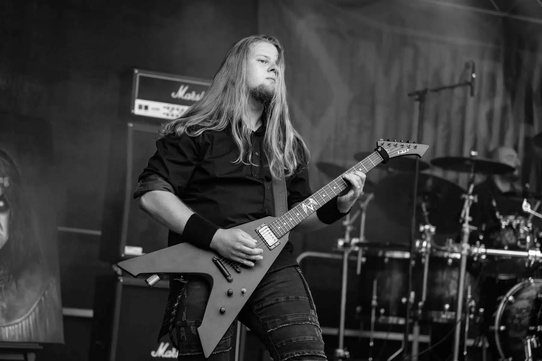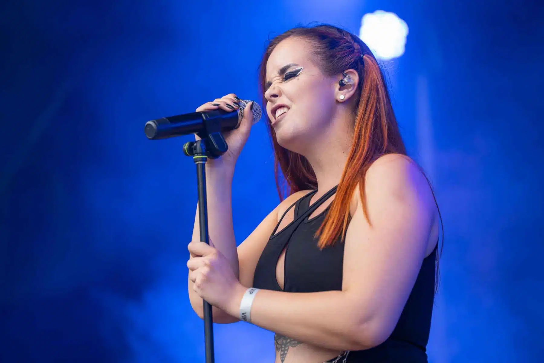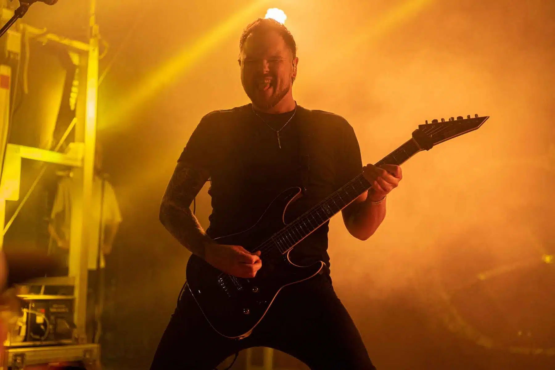 Um 17 Uhr wurden die Tore geöffnet und kurze Zeit später durften Sydra ihren ersten großen Festival Auftritt beginnen. Die Freiburger Band spielte eine Mischung aus Thrash- und Deathmetal und konnte von Anfang an einige der Besucher vor der Bühne mitreißen. Bei dem (noch) schonen Wetter wurden natürlich auch die vielen Getränke und Essensstände besucht – und auch auf dem Campingplatz ließen es sich einige Besucher gutgehen. Nach einer großzügigen Spielzeit von 40Minuten, was für eine Opener Band echt großartig ist, ging die Party erst so richtig los. Denn die tschechische Band Stellvris gab von Sekunde eins an direkt Vollgas. Mit Songs, wie „Avatar“ oder auch dem neusten Werk „Letting Go“ war von ruhig bis laut und schnell alles dabei. Frontfrau Nicol machte einen wirklich tollen Job am Gesang, besonders ihre Growls brachten den ein oder anderen Besucher zum Staunen. So war es nicht verwunderlich, dass die Band weit über zwei Stunden lang am Merchandise Stand Autogramme verteilte und Fotos mit den vielen, neu gewonnenen Fans machte. Die Musiker sind ein perfekt eingespieltes Team auf der Bühne und waren so happy, dass sie das Grinsen nicht mehr aus dem Gesicht bekamen.