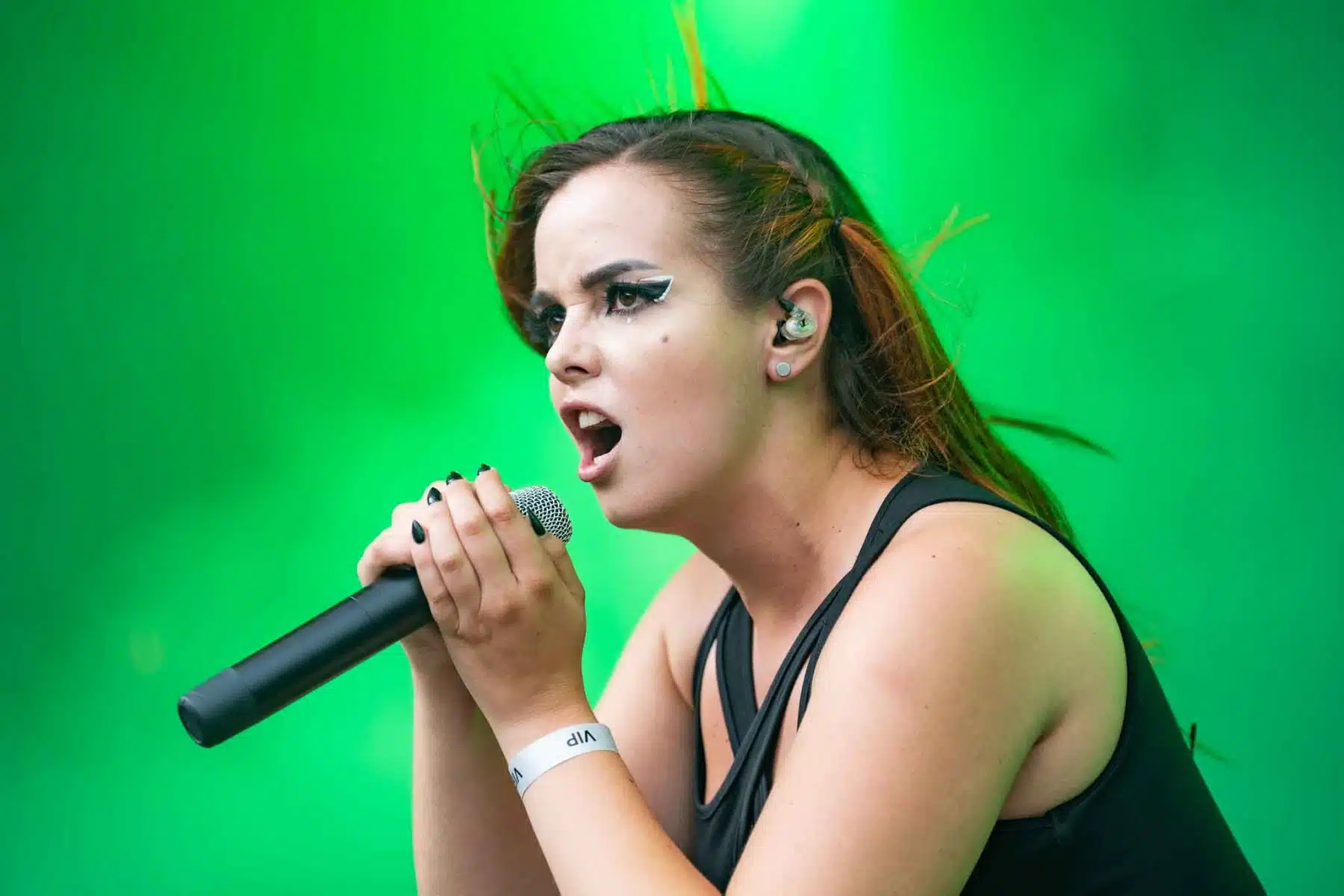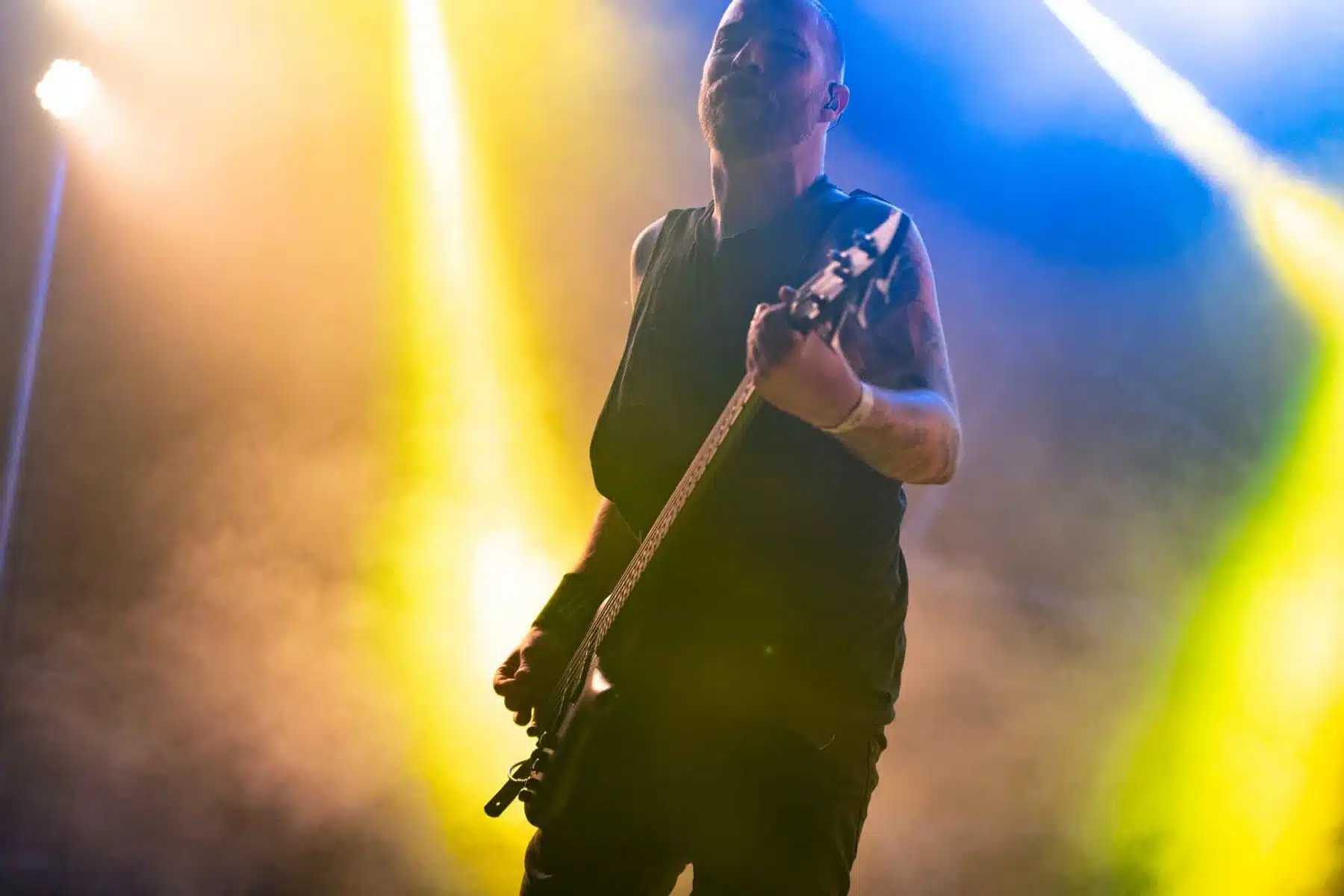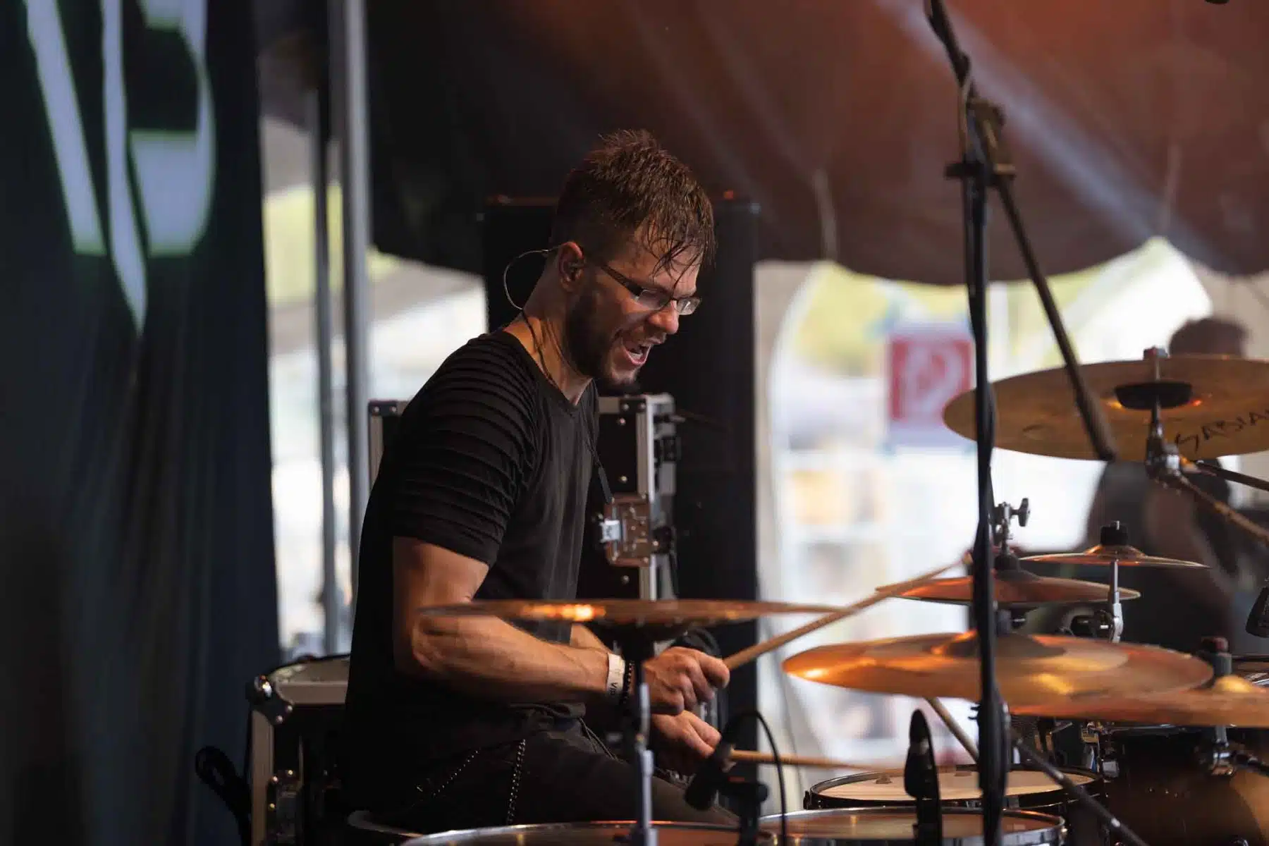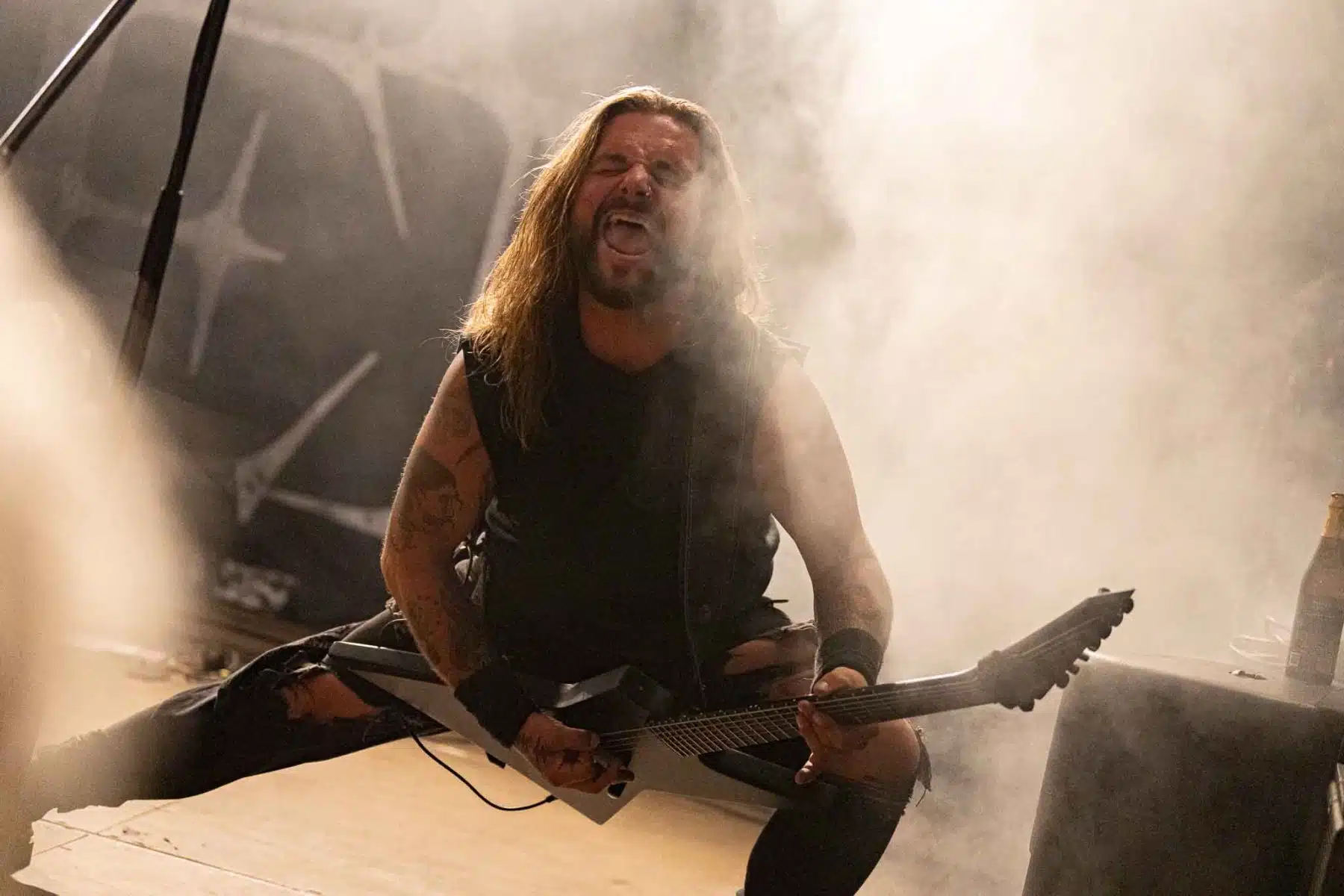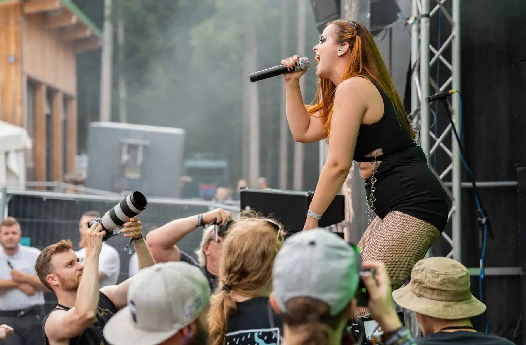 Um 17 Uhr wurden die Tore geöffnet und kurze Zeit später durften Sydra ihren ersten großen Festival Auftritt beginnen. Die Freiburger Band spielte eine Mischung aus Thrash- und Deathmetal und konnte von Anfang an einige der Besucher vor der Bühne mitreißen. Bei dem (noch) schonen Wetter wurden natürlich auch die vielen Getränke und Essensstände besucht – und auch auf dem Campingplatz ließen es sich einige Besucher gutgehen. Nach einer großzügigen Spielzeit von 40Minuten, was für eine Opener Band echt großartig ist, ging die Party erst so richtig los. Denn die tschechische Band Stellvris gab von Sekunde eins an direkt Vollgas. Mit Songs, wie „Avatar“ oder auch dem neusten Werk „Letting Go“ war von ruhig bis laut und schnell alles dabei. Frontfrau Nicol machte einen wirklich tollen Job am Gesang, besonders ihre Growls brachten den ein oder anderen Besucher zum Staunen. So war es nicht verwunderlich, dass die Band weit über zwei Stunden lang am Merchandise Stand Autogramme verteilte und Fotos mit den vielen, neu gewonnenen Fans machte. Die Musiker sind ein perfekt eingespieltes Team auf der Bühne und waren so happy, dass sie das Grinsen nicht mehr aus dem Gesicht bekamen.