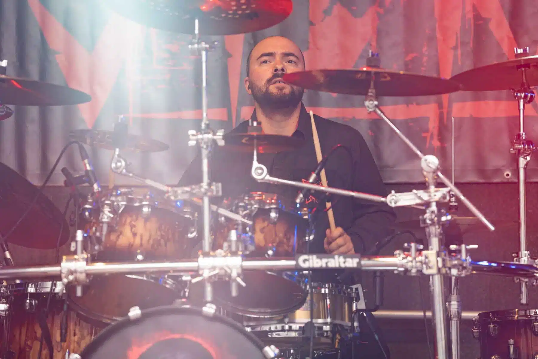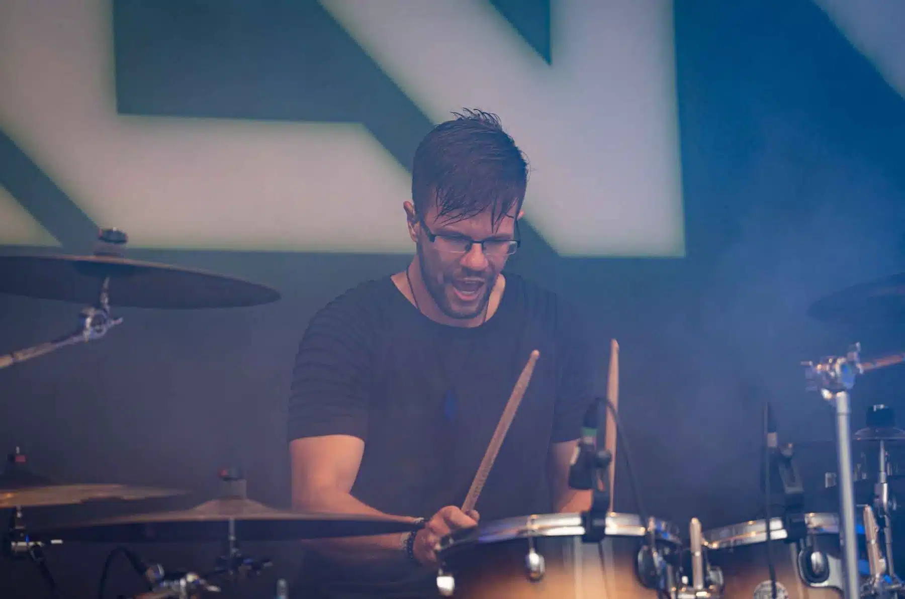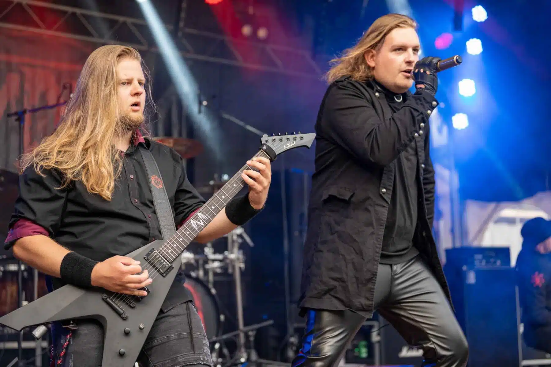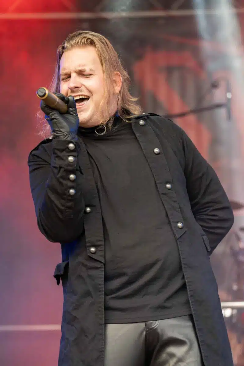 Ein komplett anderes Bühnenbild stand nun auf dem Programm, denn Visions Of Atlantis enterten wortwörtlich die Stage – wie immer in Piraten Outfits. Ihr Opener „Master Of The Hurricane“ geht immer und brachte somit auch die Besucher in Feierlaune. Das Sänger Duo Clementine und Michele harmonierten perfekt zusammen. Auch ihre Musikerkollegen auf der Bühne hatten sichtlich Spaß, der sich natürlich wie zu erwarten auf das Publikum übertrug. Mitsing-Hymnen, wie „Clocks“ oder auch „Legions Of The Sea“ waren die Höhepunkte der Show. Kaum war die Show vorbei, schlug das Wetter plötzlich um und es fing an zu regnen. Trotzdem blieben die Leute vor der Bühne, denn Any Given Day wurden schon sehnsüchtig erwartet. Die Jungs wissen, wie man ordentlich Stimmung macht. Nach den ersten energiegeladenen Songs, musste die Show kurz unterbrochen werden, denn Sänger Denis hatte mitbekommen, dass sich ein junges Mädchen verletzt hatte. Als sich die Situation geklärt hatte wurde das Konzert fortgesetzt, allerdings nicht lange. Wie bei jedem Event wird natürlich auch das Wetter im Blick behalten. Starkregen und ein heftiges Gewitter war im Anmarsch, deshalb gab es die Durchsage, dass das Festival abgebrochen wird und sich alle Besucher in ihren Autos in Sicherheit bringen sollten. Daraufhin machten sich viele auf den Heimweg, so wie auch wir, denn auf unserem Heimweg kam Einiges an Hagel und Regen runter. Dass das Festival weitergeht, damit hatte so gut wie keiner mit gerechnet, aber etwa eine Stunde nach der Unterbrechung wurde es fortgesetzt – zum Leidwesen vieler Besucher, die bereits abgereist waren. Denn ein Großteil hatte sich auf die Osnabrücker Band Nachtblut gefreut. Dennoch kamen Einige Besucher wieder zurück und konnten sich die restliche Show von Any Given Day, den kompletten Auftritt von Nachtblut und zuguterletzt Cytotoxin anschauen.