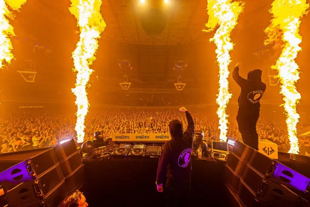 Das herausragende LineUp präsentiert 32 internationale DJs und LiveActs, die an den Decks der drei Floors stehen. In der „Arena“ befindet sich die Mainstage. Hier legt Angerfist, der Top-Star der Szene, auf. Der Niederländer ist gleichzeitig auch der Produzent der diesjährigen Syndicate-Hymne „SYNDICATE Of Noise“.Mit Miss K8 und AniMe stehen hier zudem zwei der bekanntesten weiblichen Hardcore-DJs auf der Bühne. Unterstützt werden die beiden u.a. von Mad Dog, D-Fence, Barber und Deadly Guns.