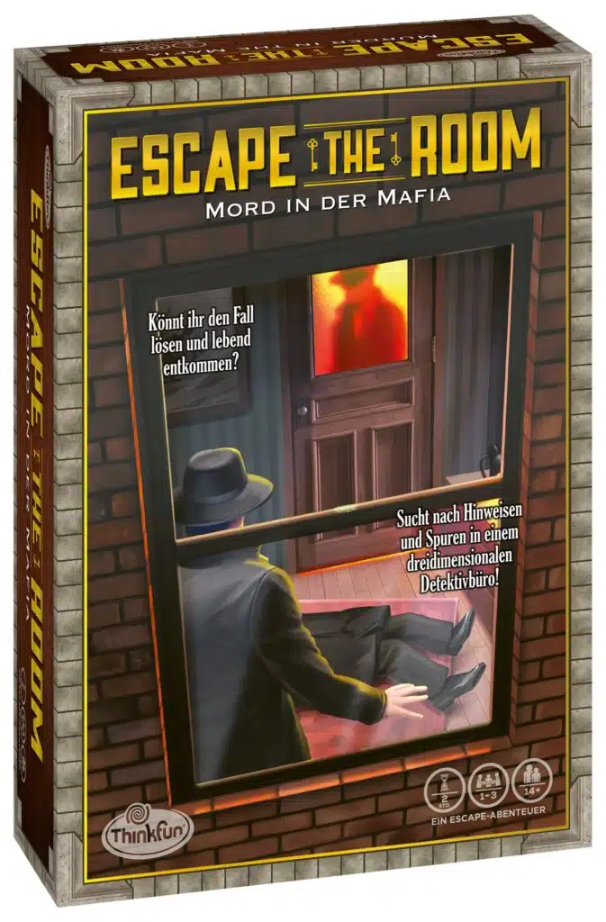 Mit ThinkFun erleben Knobel-Fans das Escape-Room-Erlebnis auch als Gesellschaftsspiel. Im vierten Fall der Serie geraten die Spieler in einen Mafia-Mord – und das in den eigenen vier Wänden. Ein Vollstrecker liegt tot im heimischen Detektivbüro, die Tatwaffe direkt daneben. Doch was ist passiert? Um die eigene Unschuld zu beweisen, gilt es jetzt, den wahren Täter zu überführen, und zwar so schnell wie nur möglich. Dabei unterstützen die detailgenaue dreidimensionale Nachbildung des Detektivbüros und zehn interaktive Objekte, welche Hinweise auf die Lösung verbergen. Wie beim realen Erlebnis lösen Spieler gemeinsam und unter Zeitdruck knifflige Aufgaben und schulen dabei das logische Denken. Geeignet für Freunde der Escape-Spiele und Exit-Spiele.