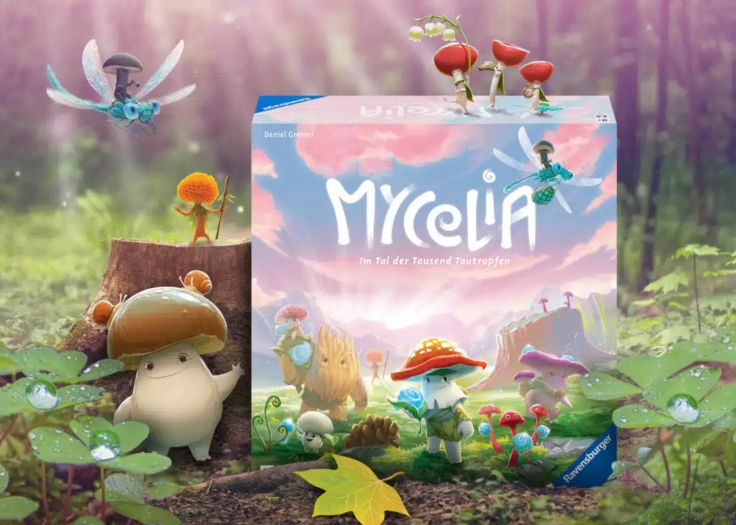 Im Tal der tausend Tautropfen wartet auf die Spieler die wundervolle Welt von Mycelia. Und, wie der Name schon sagt, ein heldenhaftes und mysteriöses Waldvolk: Pilze! In Form von Karten helfen sie den Spielern bei ihrem Ziel, die magischen Tautropfen von ihren Spielplänen zu entfernen und zum Schrein des Lebens zu bringen. Dabei gilt es, das eigene Kartendeck stetig zu verbessern und damit Fähigkeiten stärkerer Pilze zu nutzen. Wer zuerst alle Tautropfen entfernt hat, gewinnt den Segen der Waldgöttin und damit Mycelia, das neue Familienspiel von Ravensburger.