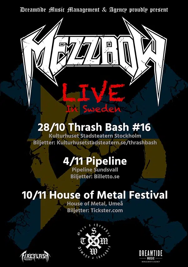 Alvaro „Alvis“ Svanerö, der DEATH, MESHUGGAH und PARADISE LOST als seine Haupteinflüsse nennt, gab bereits kürzlich sein Debüt auf dem „Keep It True„-Festival. Er fügt hinzu: „Nach vielen Jahren als Schlagzeuger bei den Melodic-Metallern Imperial Domain, tonnenweise Gigs mit der Allround-Band PlayBoys im Vorprogramm großer schwedischer Künstler und Session-Arbeiten u.a. für Born To Die, ThirdStorm und Sarcasm stellte sich die Frage, ob ich der neue Schlagzeuger für meine alten Helden Mezzrow werden sollte! Ich kannte ein paar der Jungs schon vorher und als sie mich fragten, ob ich ein bisschen trommeln möchte, hieß es natürlich: JA! Es macht extrem viel Spaß, wieder Thrash Metal zu spielen! Ich war schon als Teenager ein großer Fan der Band, daher bin ich sehr froh und stolz, Teil dieser großartigen Band zu sein! Ich hoffe, wir sehen uns auf der Tour!“