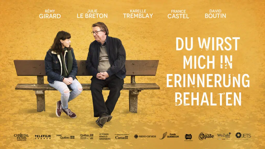 Mit einer besonderen Mischung aus Humor und Drama gelingt es Regisseur Éric Tessier, das Thema Alzheimer zu enttabuisieren. DU WIRST MICH IN ERINNERUNG BEHALTEN ist ein Film über die Bedeutung des Erinnerns auf verschiedenen Ebenen und die heilende Wirkung (unwahrscheinlicher) menschlicher Begegnungen. Hauptdarsteller Rémy Girard (DIE INVASION DER BARBAREN) wurde für seine Rolle mit dem Borsos Wettbewerb als Bester Darsteller ausgezeichnet. Erfrischend an seiner Seite: Nachwuchstalent Karelle Tremblay.