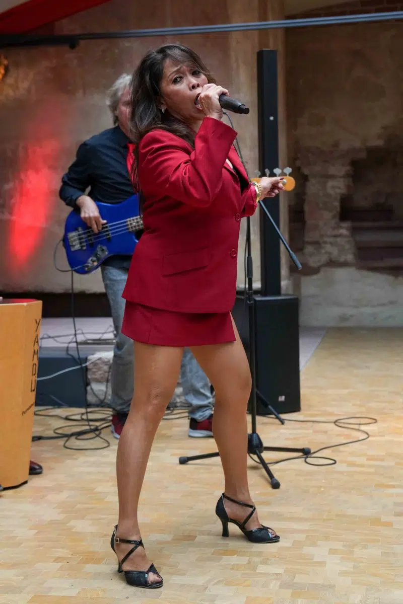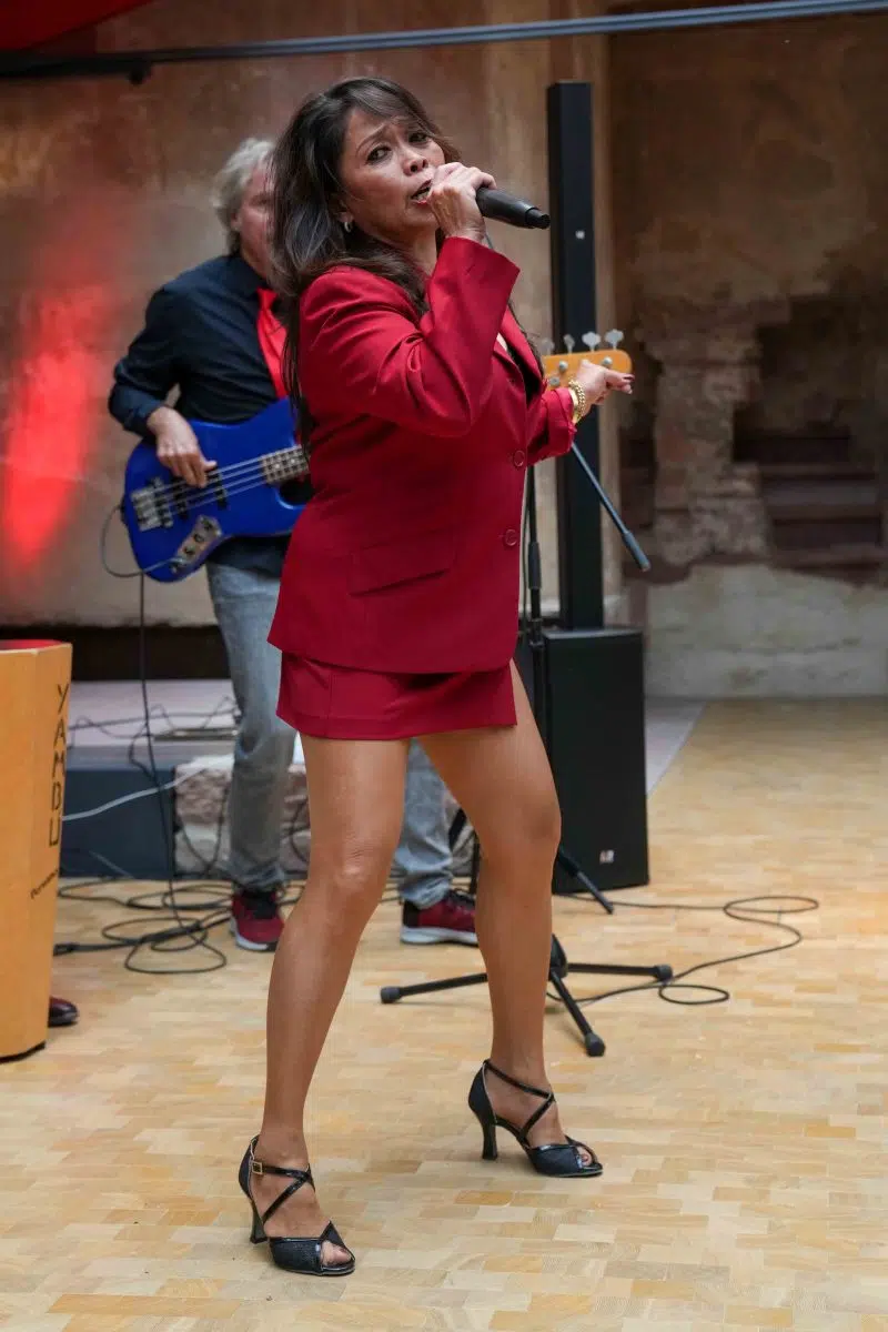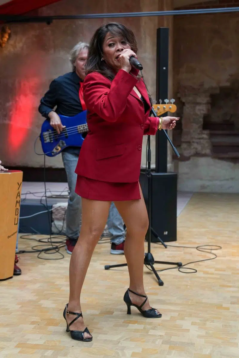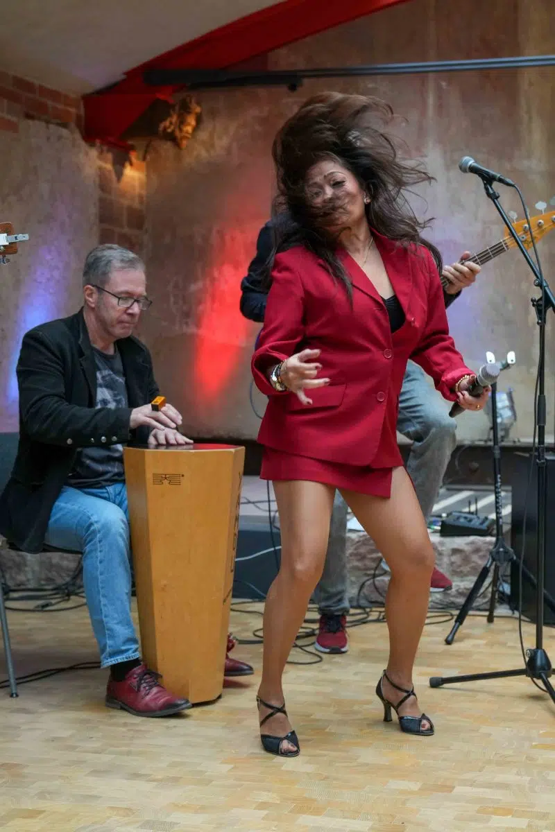 Seine Partner für die Show-Saison wählt Scharff immer mit Bedacht und will regional ansässige Dienstleister, Bands und Lieferantenfördern. So wird an den insgesamt 29 Terminen von „Tina at the Castle“ die Band um Frontmann Freddy Wonder musikalisch den Ton angeben. Als Freddy Wonder Combo tourt das Oktett schon seit Jahrzehnten erfolgreich durch die Region. Bei der Show im Schloss werden es insgesamt zehn Musiker, Sänger und Tänzer sein. Ganz vorne dabei: Sängerin Tess D. Sie darf ihre ganz persönliche Bestimmung ausleben, denn die „Petite Dame“ mit der großen Stimme verkörpert ihr Idol schon seit über 25 Jahren wie keine andere. Freddy Wonder nennt sie nicht umsonst selbstbewusst „Tina Turners Schwester“. Obgleich sie auf den Philippinen geboren wurde, sieht sie der Original-Rockröhre aus Nutbush, Tennessee, tatsächlich sogar ähnlich. „Abgesehen von ihrer genialen Stimme, die sehr nahe an das Original ran reicht, versprüht sie eine ähnliche Energie und Ausstrahlung, die jeden sofort mitnehmen wird“, ist sich Scharff sicher. Eigens für die Show werden für Sängerin Tess D. Kostüme maßgeschneidert, die sich an den originalen Outfits von Tina Turner orientieren.