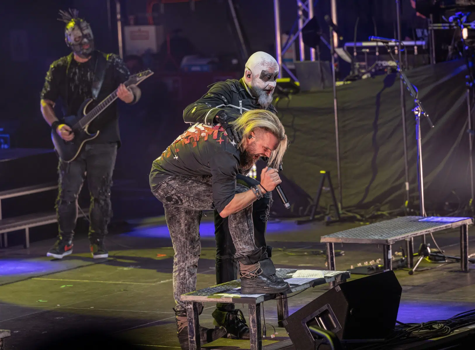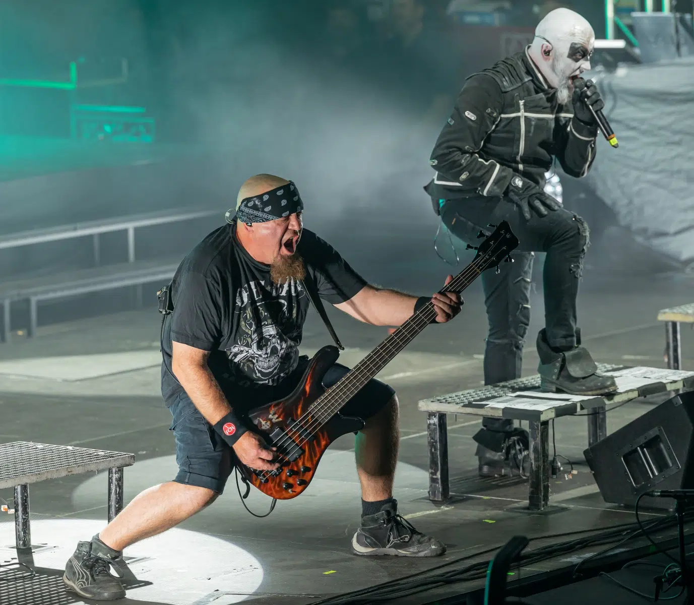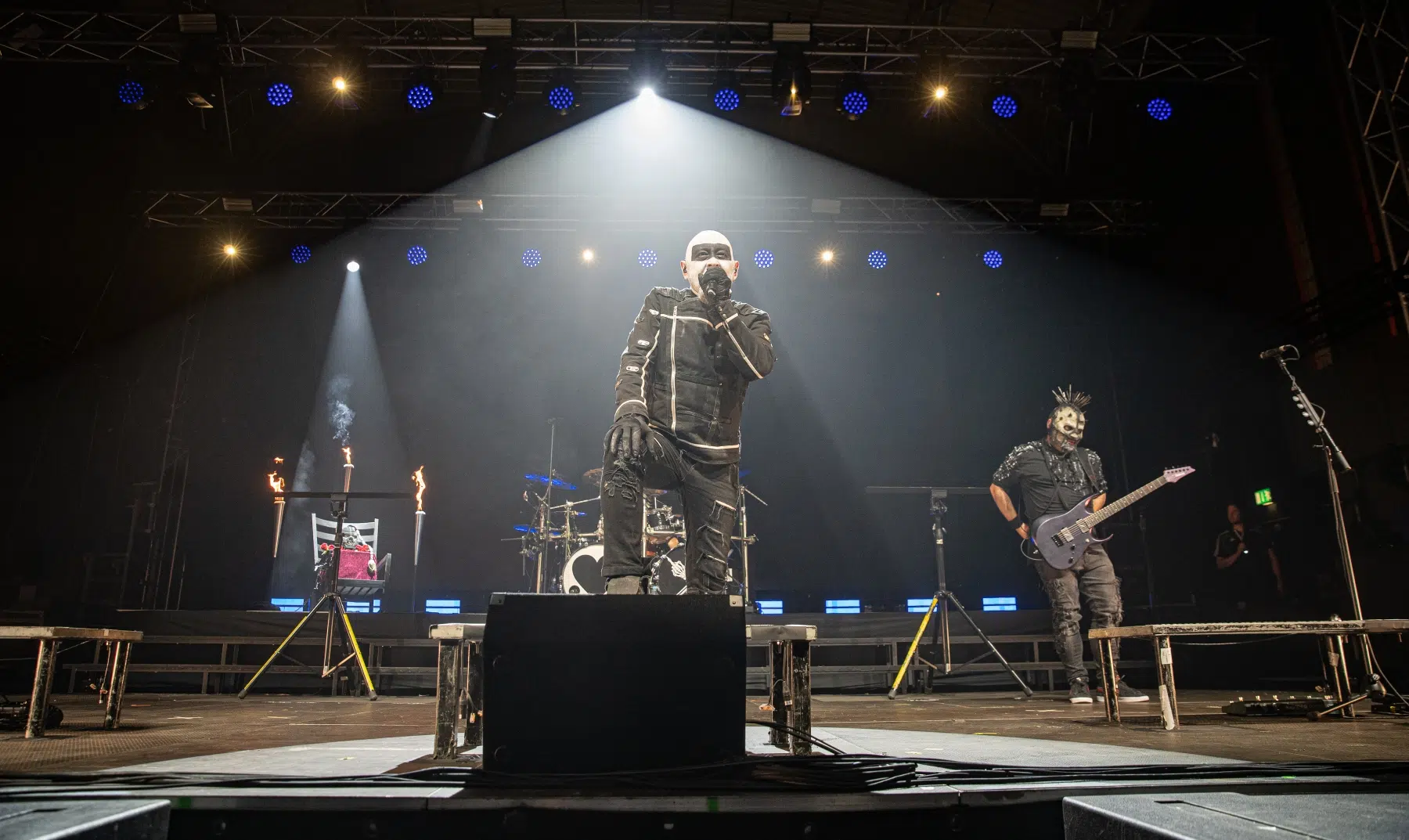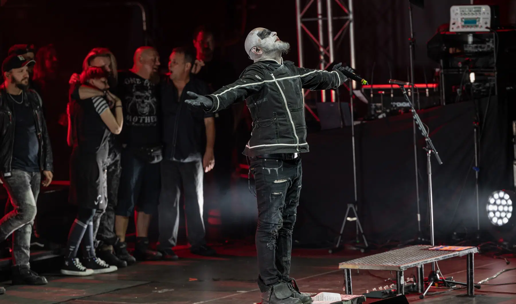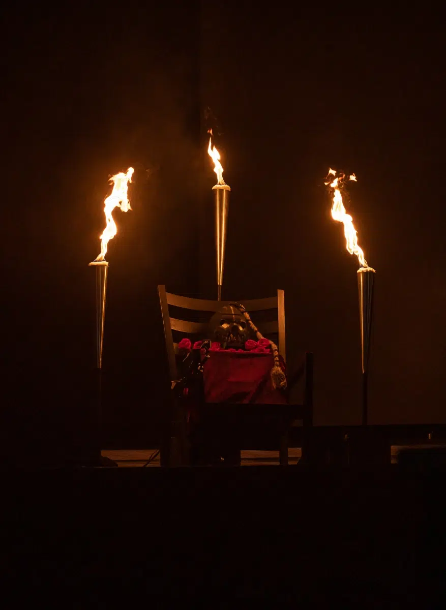 Schon beim Betreten der Eventhalle Strohofer spürte man die Emotionen in der Luft. Fans aus der ganzen Welt waren angereist, um an diesem einzigartigen Konzert teilzunehmen. Die Halle erstrahlte in einem besonderen Licht, das eine ganz eigene Magie versprühte. Die Bühne der Eventhalle war ein würdiger Ort für diese Gedenkveranstaltung, in einer Ecke wurde ein Schaukelstuhl plaziert auf welchem die Maske des verstorbenen Bassisten ruhte.
