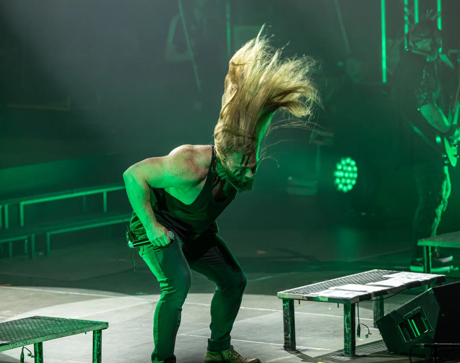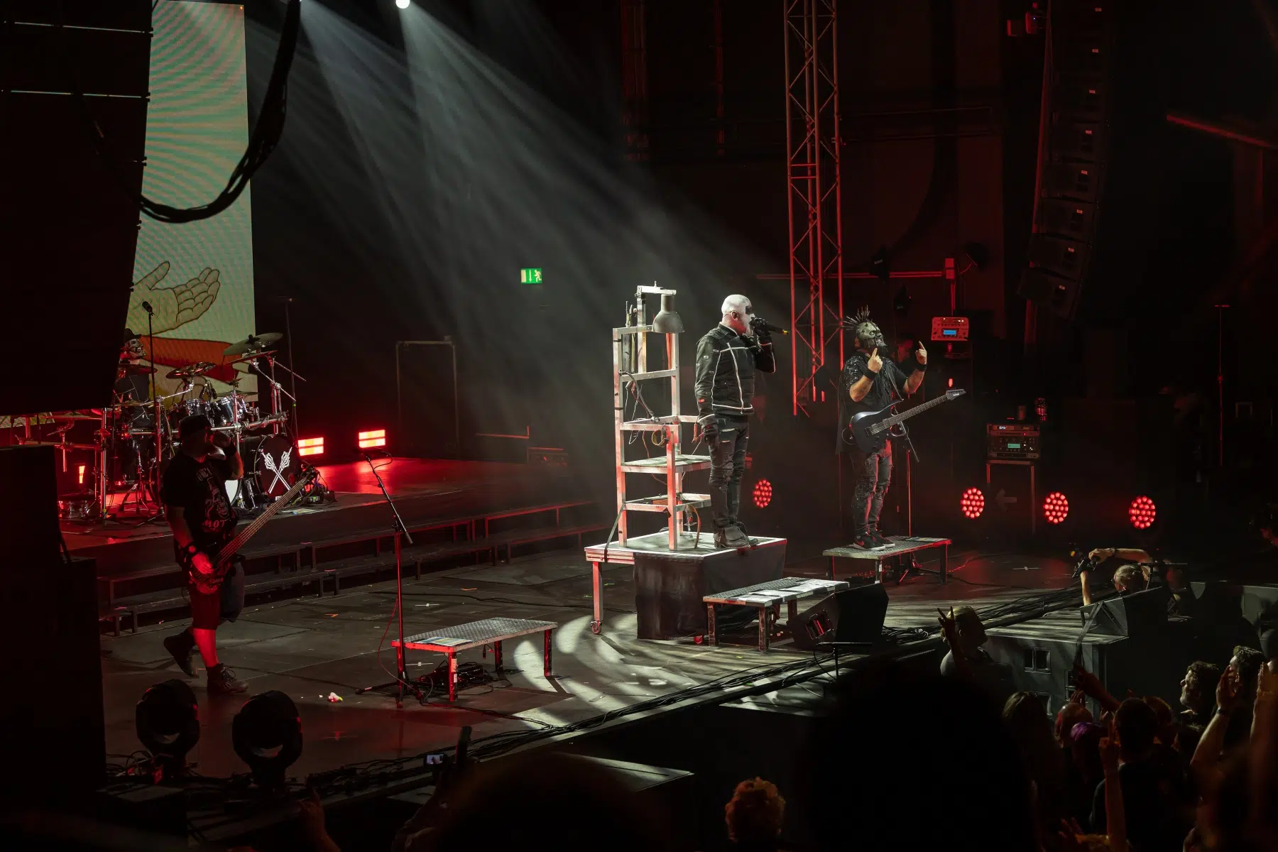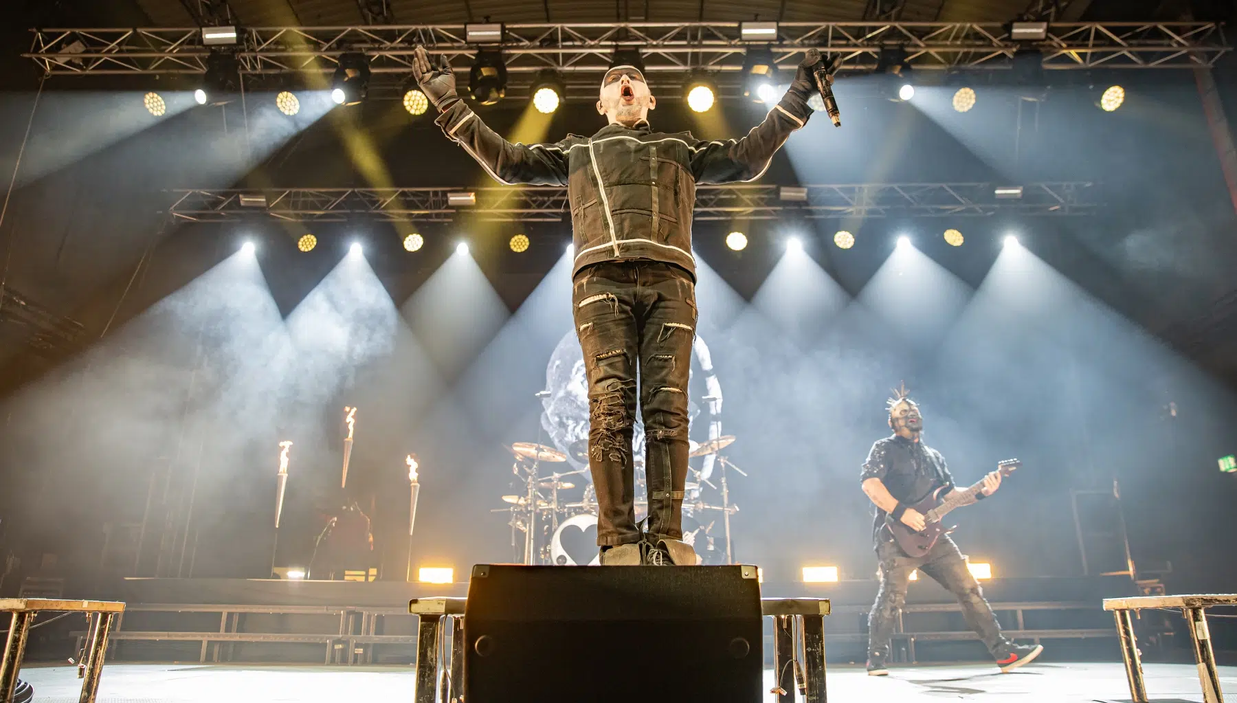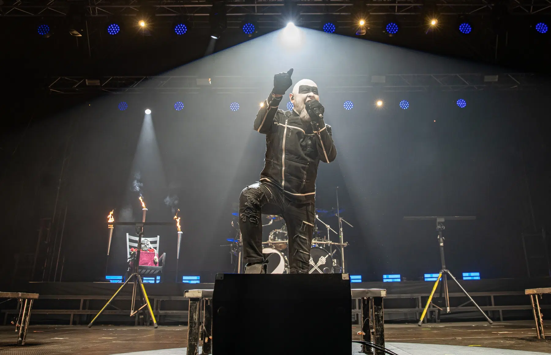 Schon beim Betreten der Eventhalle Strohofer spürte man die Emotionen in der Luft. Fans aus der ganzen Welt waren angereist, um an diesem einzigartigen Konzert teilzunehmen. Die Halle erstrahlte in einem besonderen Licht, das eine ganz eigene Magie versprühte. Die Bühne der Eventhalle war ein würdiger Ort für diese Gedenkveranstaltung, in einer Ecke wurde ein Schaukelstuhl plaziert auf welchem die Maske des verstorbenen Bassisten ruhte.
