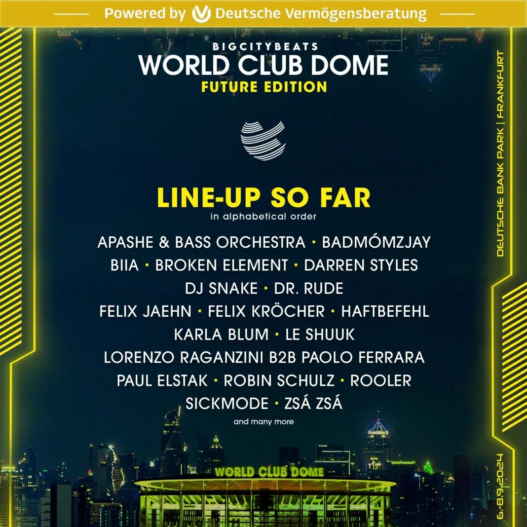 Das BigCityBeats WORLD CLUB DOME Festival, Nr. 1 in Germany + Top 10 of the World, kündigt die ersten Acts, die im September 2024 auftreten werden: