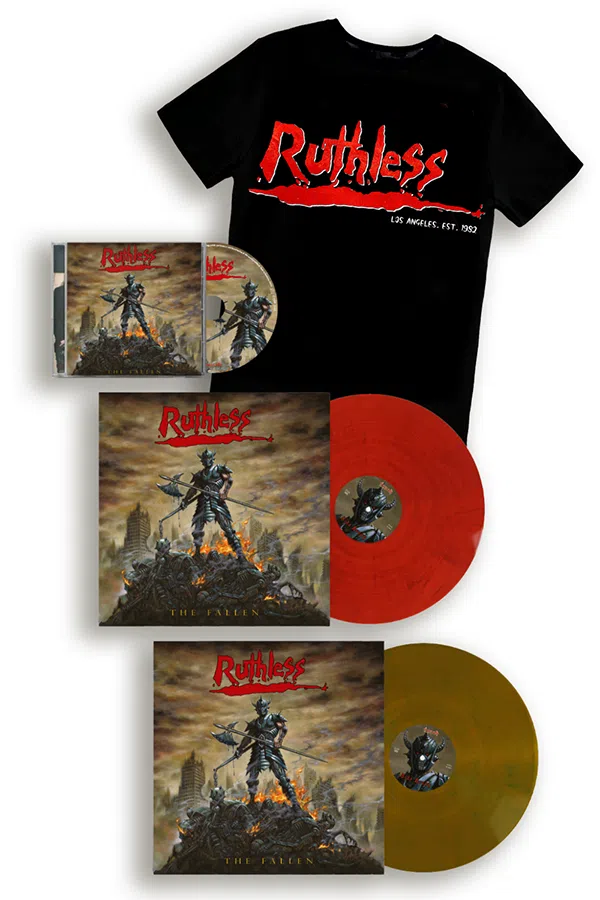 Mehr Informationen„The Fallen“ wird als CD, in zwei limitierten Vinyl-Editionen (je 300 Exemplare) in dark orange & bloody red, sowie zusammen mit einem exklusiven Logo-Bundle-Shirt im Atomic Fire Records Webshop und digital erhältlich sein. „Ihr könnt erwarten, dass es sehr kraftvoll sein wird, mit einer Rückbesinnung auf die frühen Tage der Band. Dieses Album wird euch alles bieten, was Ruthless ausmacht“, kommentiert Sammy DeJohn, der die Band 1982 gründete. „The Fallen“ erscheint am 12. Januar 2024.