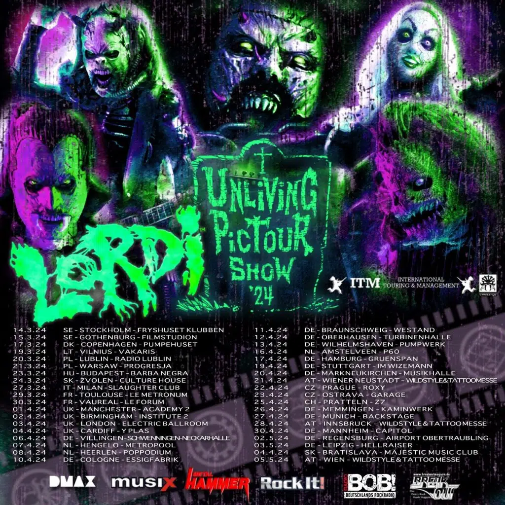 Seid ihr dieses Jahr alle artig gewesen? Glaubt ihr, ihr habt eine weitere vorweihnachtliche Überraschung verdient? Finnlands kultige Rockband LORDI gibt heute jedenfalls die Erweiterung ihrer anstehenden Europatour bekannt und bringt für all jene, die in den vergangenen Monaten brav gewesen sind (oder auch nicht), einen prallen Sack neubestätigter Termine mit. So werden die Monster um Mr. Lordi ihre »Unliving Pictour Show 2024« auch in Schweden, Dänemark, Litauen, Polen, Ungarn, der Slowakei, Italien, Frankreich, Großbritannien, den Niederlanden und Tschechien zum Besten geben. Übrigens: Damit kommendes Jahr auch ihre Heimat in den (Live-)Genuss ihrer aktuellen Scheibe »Screem Writers Guild« (released on March 31, 2023 through Atomic Fire Records) kommt, hat das Quintett kürzlich bereits erste (Festival-)Termine in Finnland bestätigt. Wenn ihr befreundeten LORDI-Fans also noch ein besonderes Präsent unter den Baum legen wollt, könnt ihr euch direkt Karten (oder VIP-Pakete; kein Ticket enthalten!) für die kommenden Konzerte sichern. Bis dahin: „Happy hellidaze […] have a merry something and a happy blah blah blah.“