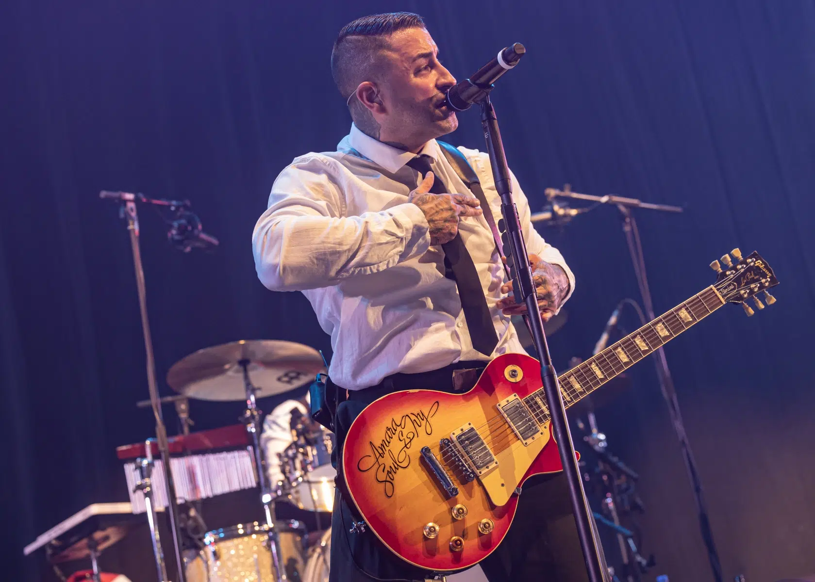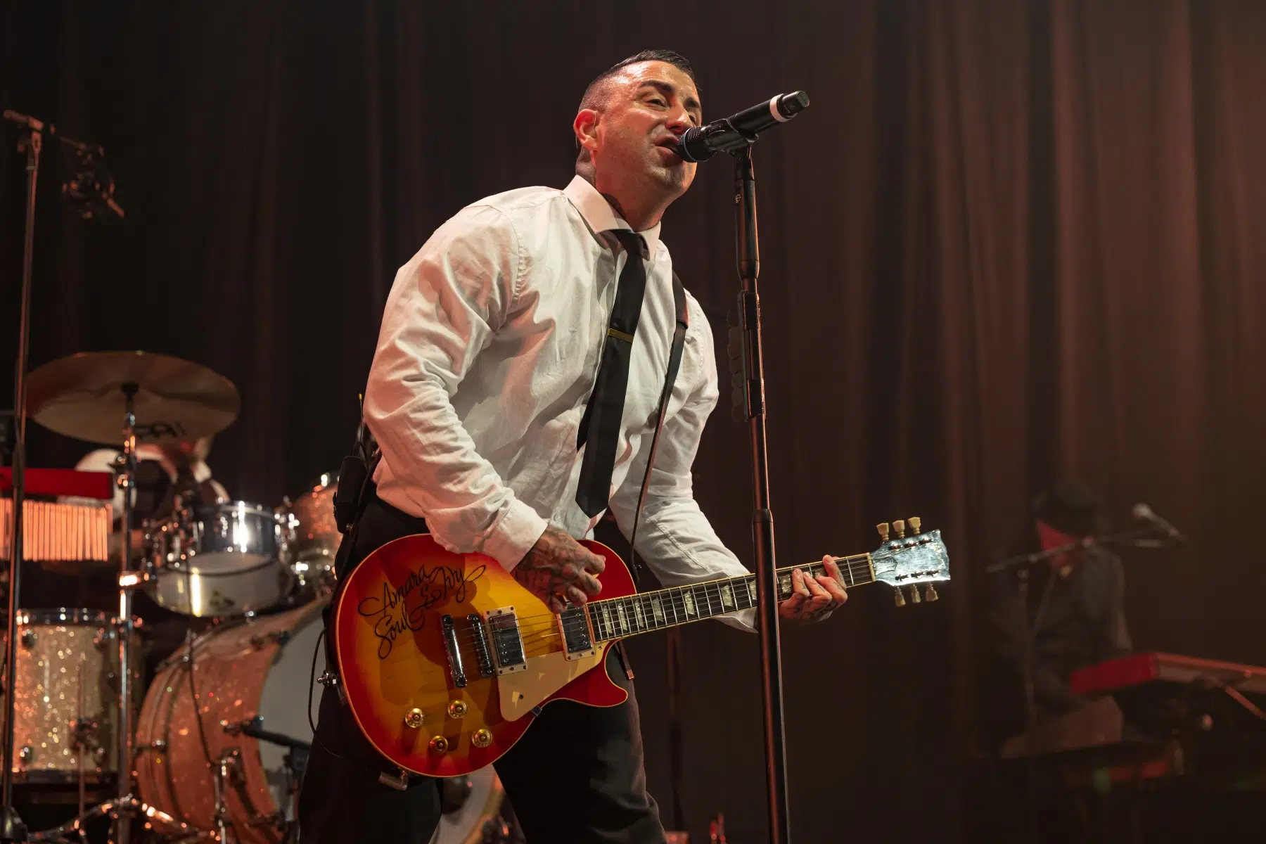 Die Atmosphäre wurde bereits zu Beginn des Abends von Chuck Ragan angeheizt, der mit seiner akustischen Gitarre und rauchigen Stimme das Publikum in seinen Bann zog. Der Singer-Songwriter, bekannt für seinen charakteristischen Folk-Punk-Stil, schaffte es, die Halle mit seiner Authentizität und Intensität zu füllen. Songs wie „Something May Catch Fire“ und „Nomad by Fate“ wurden von den Fans mit lauten Jubelrufen belohnt.