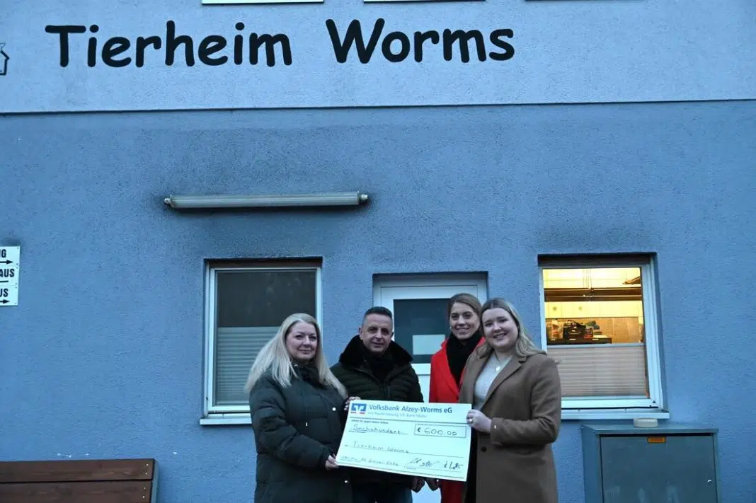 Bürgermeisterin Stephanie Lohr und „Backfischbraut“ Frau Hanna Reuther hatten im Rahmen der Wormser Weihnacht bei der Schaustellerfamilie Nock Crêpes für einen guten Zweck verkauft. In dieser Verkaufszeit wurden Einnahmen in Höhe von 600 Euro erzielt, die die Familie Nock nun im Rahmen einer offiziellen Scheckübergabe an das Tierheim spendete.