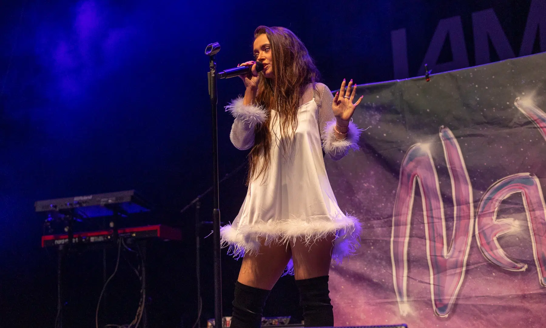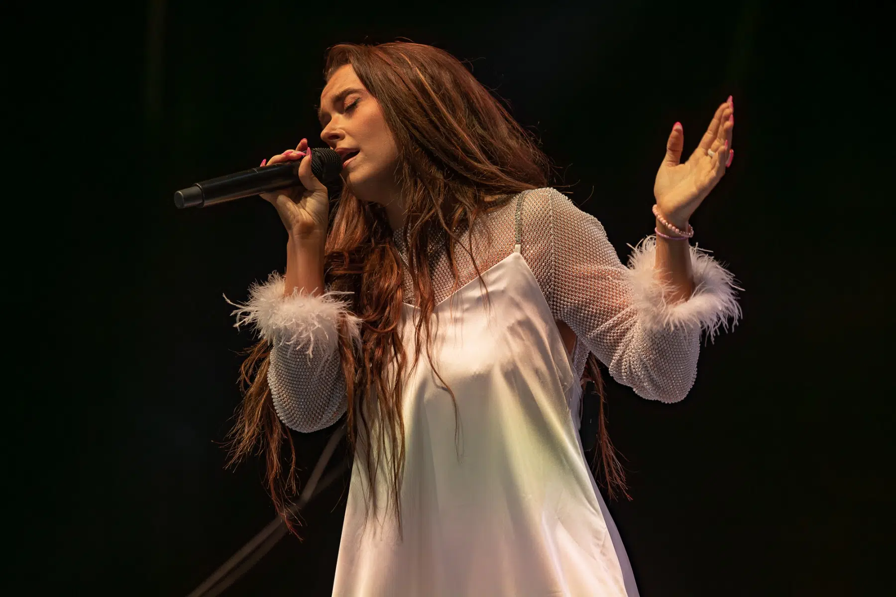 Die junge NEVE betrat die Bühne mit einer Natürlichkeit und Ausstrahlung, die das Publikum sofort in ihren Bann zog. Sie präsentierte ihre eigenen Songs, durchwoben von ehrlichen Texten und einer Stimme, die eine bemerkenswerte emotionale Tiefe erreicht. Die Zuschauer lauschten gebannt den Melodien und wurden Zeugen, wie NEVE mit ihrem aufrichtigen Auftreten und ihren eingängigen Kompositionen die Herzen im Sturm eroberte.