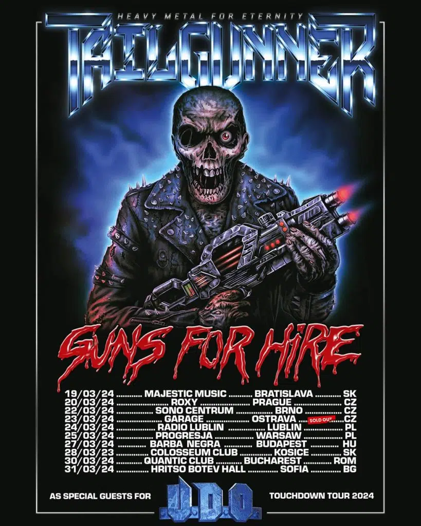 Im vergangenen Jahr stürmten die britischen Heavy-Metal-Durchstarter TAILGUNNERreihenweise die europäischen Bühnen und veröffentlichten zudem ihr weltweit gefeiertes Debütwerk »Guns For Hire«, das im Fistful Of Metal-Magazin gar den Titel „Album des Jahres 2023“ einheimsen konnte. Nun ist es an der Zeit, dass die Truppe erneut in die hiesigen Clubs kommt: Dieses Jahr werden TAILGUNNER u.a. im Frühling mit den deutschen Metal-Legenden von U.D.O. (März) sowie den US-Heavy-Metallern RIOT (V)(Mai) durch Europa reisen, aber selbstverständlich stehen für die Band auch reichlich eigene Headlineshows auf dem Programm. Alle Details findet ihr unten!