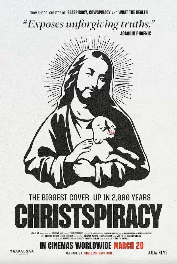 „CHRISTSPIRACY, der neueste Dokumentarfilm von Kip Andersen und Kameron Waters, nimmt uns mit auf eine philosophische Reise, um die Wahrheit in Bezug auf Jesus und die Tiere herauszufinden“, sagt Oscar-Preisträger und Tierschützer Joaquin Phoenix. „Der Film erforscht die Antworten vieler Weltreligionen und enthüllt unerbittliche Wahrheiten über Tierquälerei im Namen der Religion.“