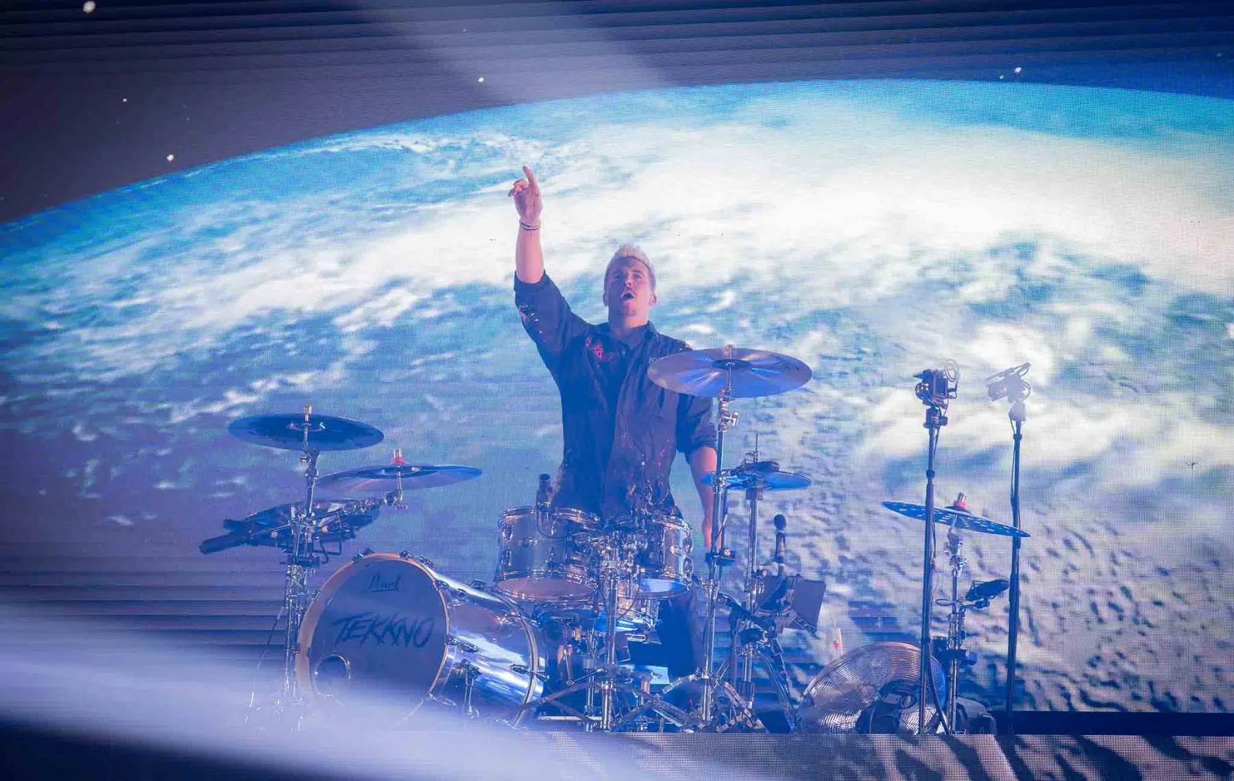 David, Drummer von Electric Callboy saß oben auf seinem Podest – hinter ihm eine riesige Wand aus LED’S; und er gab mitten im Set ein geiles Drumsolo mit toller Lichtshow.