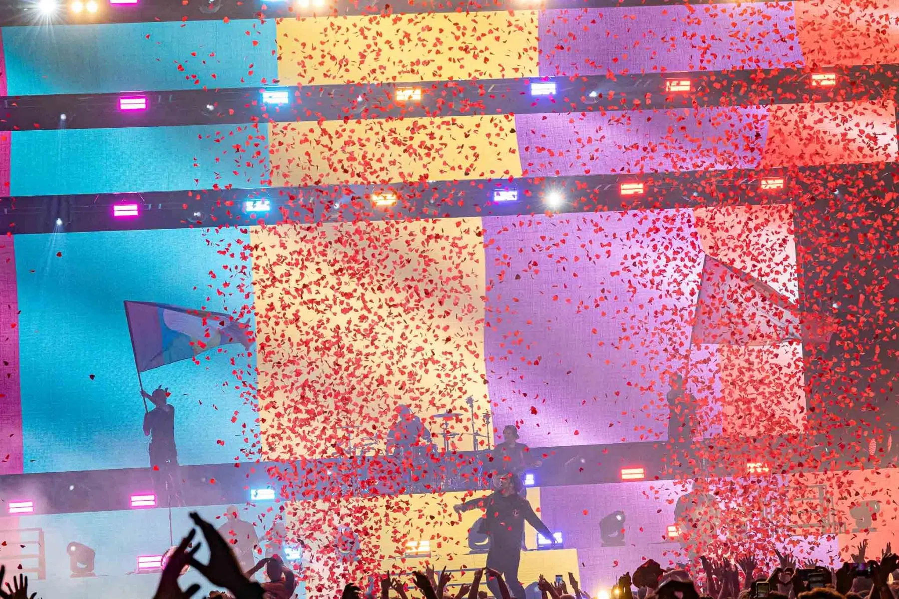 Die Band weiß einfach, wie man seinen Fans eine fette Show liefern kann, somit gab es immer wieder Konfettikanonen und Pros. So auch bei dem Song „Best Day“, wo sich natürlich alle vorher auf den Boden setzen sollten, um dann gemeinsam hochzuspringen…das sah schon sehr stark aus bei der Masse an Besuchern. Als dann der wohl mit am meisten gefeierte Song „Hypa Hypa“ gespielt wurde, gab es kein Halten mehr. Totale Eskalation – springen, klatschen, laut mitsingen, pogen – alles war mit dabei.