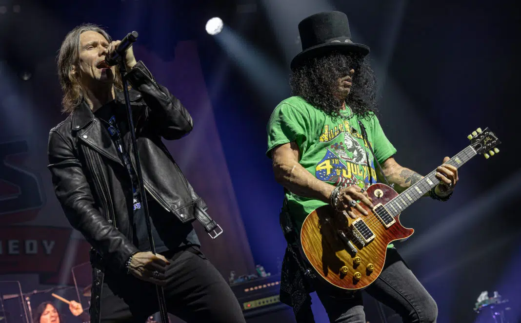 Nach einer kurzen Pause war es dann endlich soweit: SLASH featuring Myles Kennedy and The Conspirators betraten die Bühne und brachten die Atmosphäre auf ein neues Level. Angeführt von dem legendären Guns N‘ Roses-Gitarristen Slash und dem charismatischen Sänger Myles Kennedy entfesselte die Band eine regelrechte Rock’n’Roll-Explosion. Mit Klassikern aus Slash’s Solokarriere sowie Songs von The Conspirators begeisterten sie das Publikum von der ersten Sekunde an. Slashs virtuose Gitarrensolos fesselten die Zuschauer, während Myles Kennedys kraftvolle Stimme die Massen in Ekstase versetzte. Hits wie „Anastasia“, „World on Fire“ und natürlich „The River Is Rising“ sorgten für ekstatische Jubelrufe und ließen die Halle erbeben.