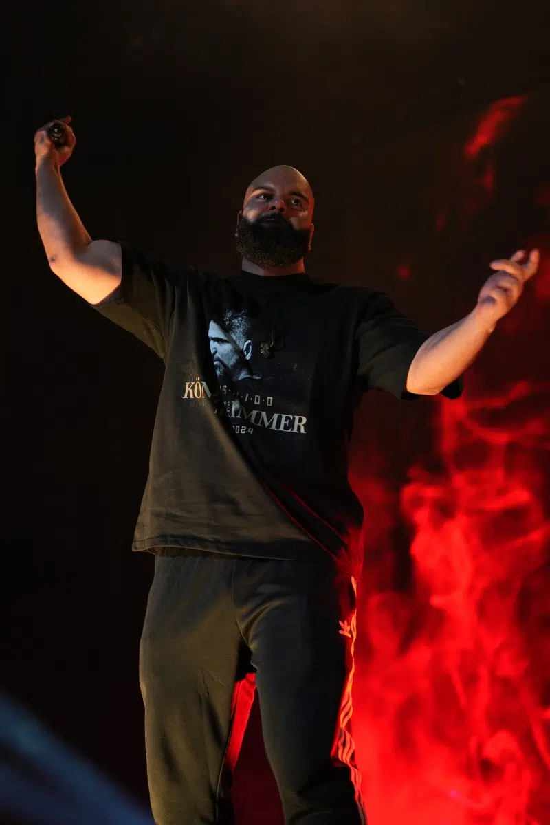 Mit eindrucksvoller Bühnenpräsenz und einem Repertoire voller Hits zog Bushido, unterstützt von dem Heidelberger Animus und DJ Marvin California, das Publikum sofort in seinen Bann. Von seinen frühen Erfolgen bis hin zu neuen Tracks von seinem aktuellen Album „König für immer“ bot er eine beeindruckende Bandbreite an Musik, die die verschiedenen Phasen seiner Karriere widerspiegelte.