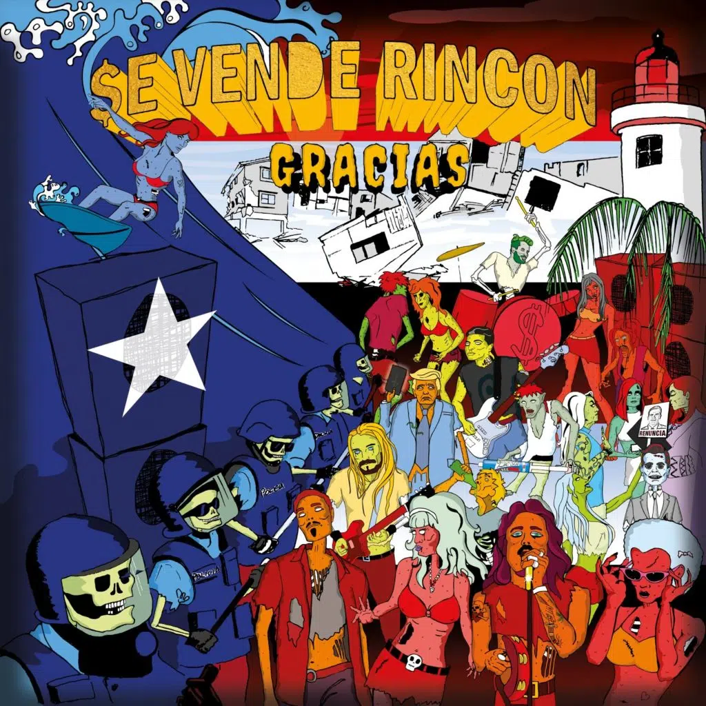 $E VENDE RINCON is a punk’n‘roll band based in Rincon, Puerto Rico, the surfing capital of the Caribbean, and the lower east side of New York City. Their debut record titled „Gracias“ is a mix of old school punk rock (see The Ramones, Dead Kennedys, Misfits or Iggy & The Stooges) and Chicago Blues from the 50s and 60s (think of Muddy Waters, Lil Walter, Hound Dog Taylor, Howlin’ Wolf). $E VENDE RINCON sees punk and blues as the same in attitude.