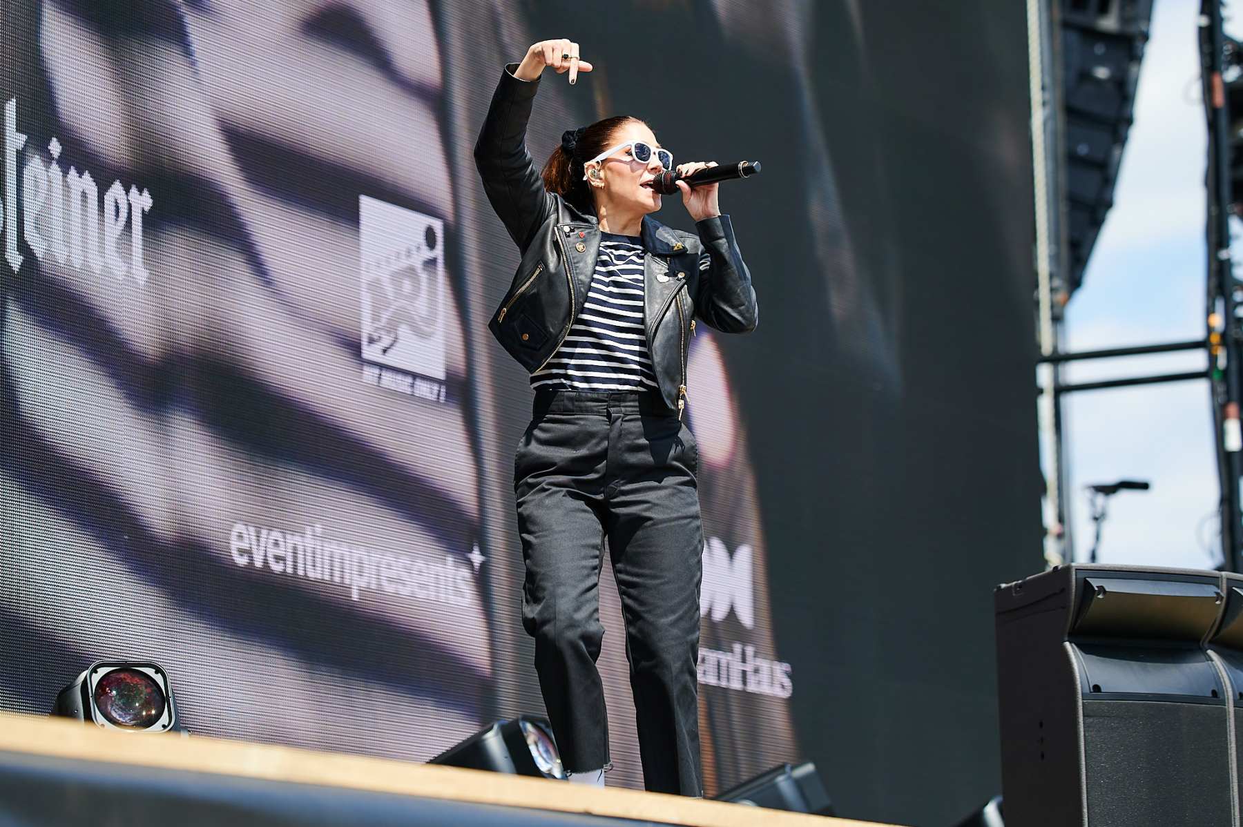 Den Auftakt machte die Ska-Punk Band THE INTERRUPTERS. Die vier aus Los Angeles heizten dem Publikum schon am frühen Nachmittag so richtig ein. Mit Sonnenbrille, so richtig viel Bock und jeder Menge Spaß sprang Lead Sängerin Aimee Allan über die Bühne und strahlte mit der Sonne um die Wette.