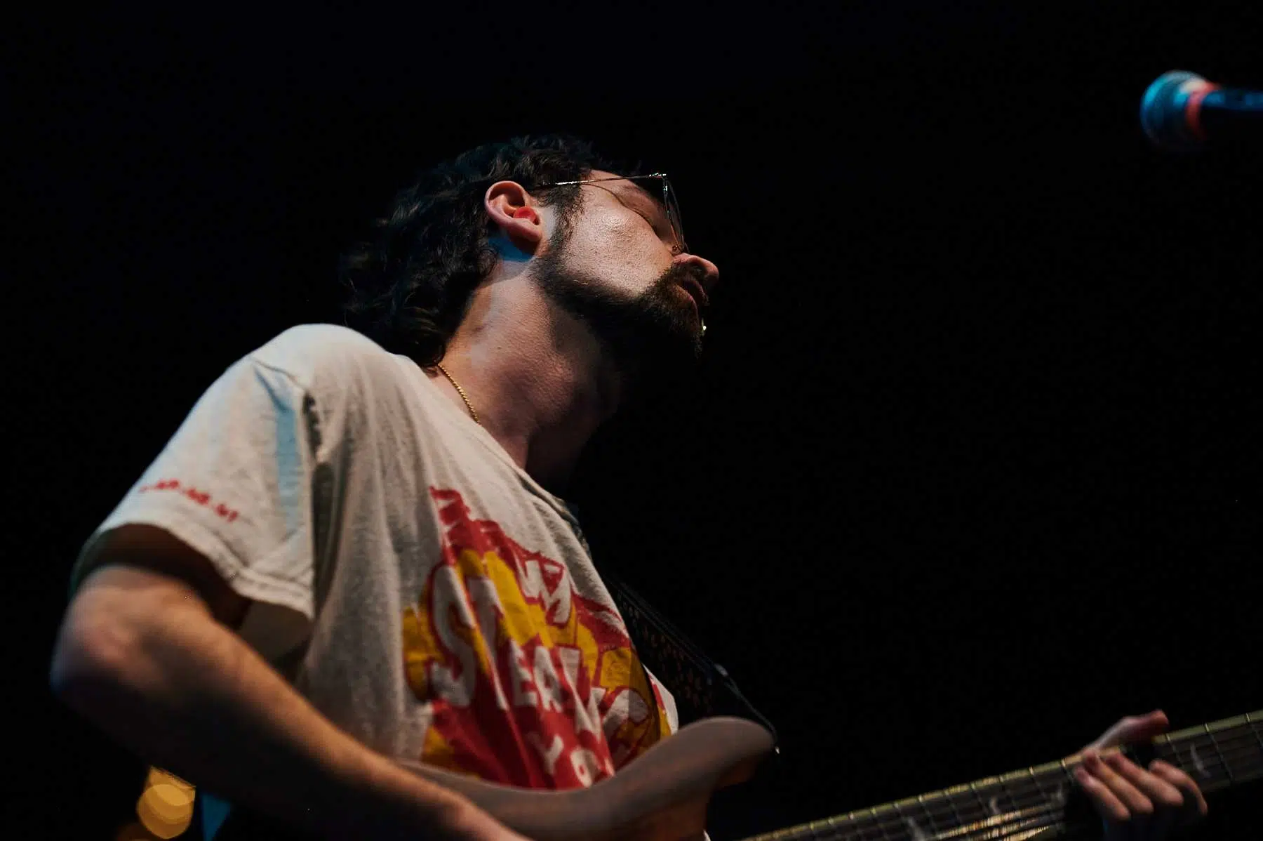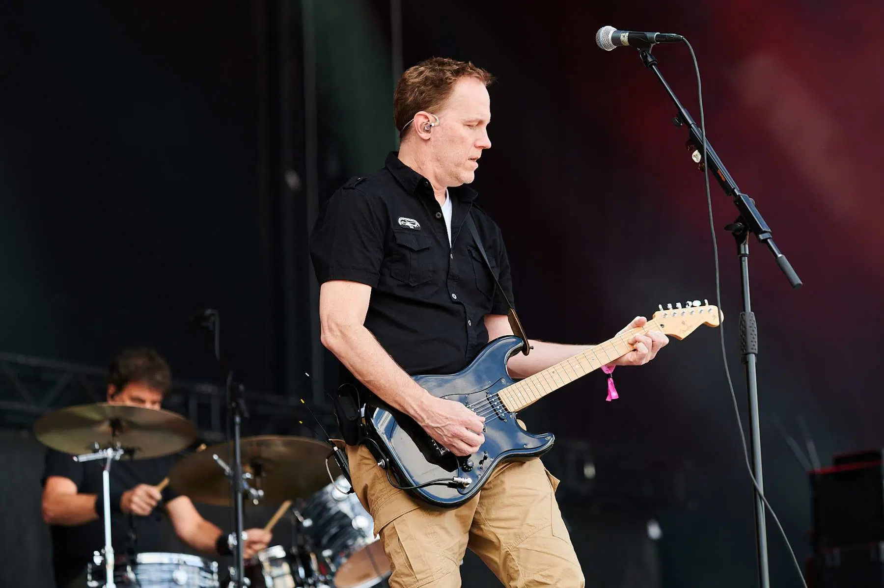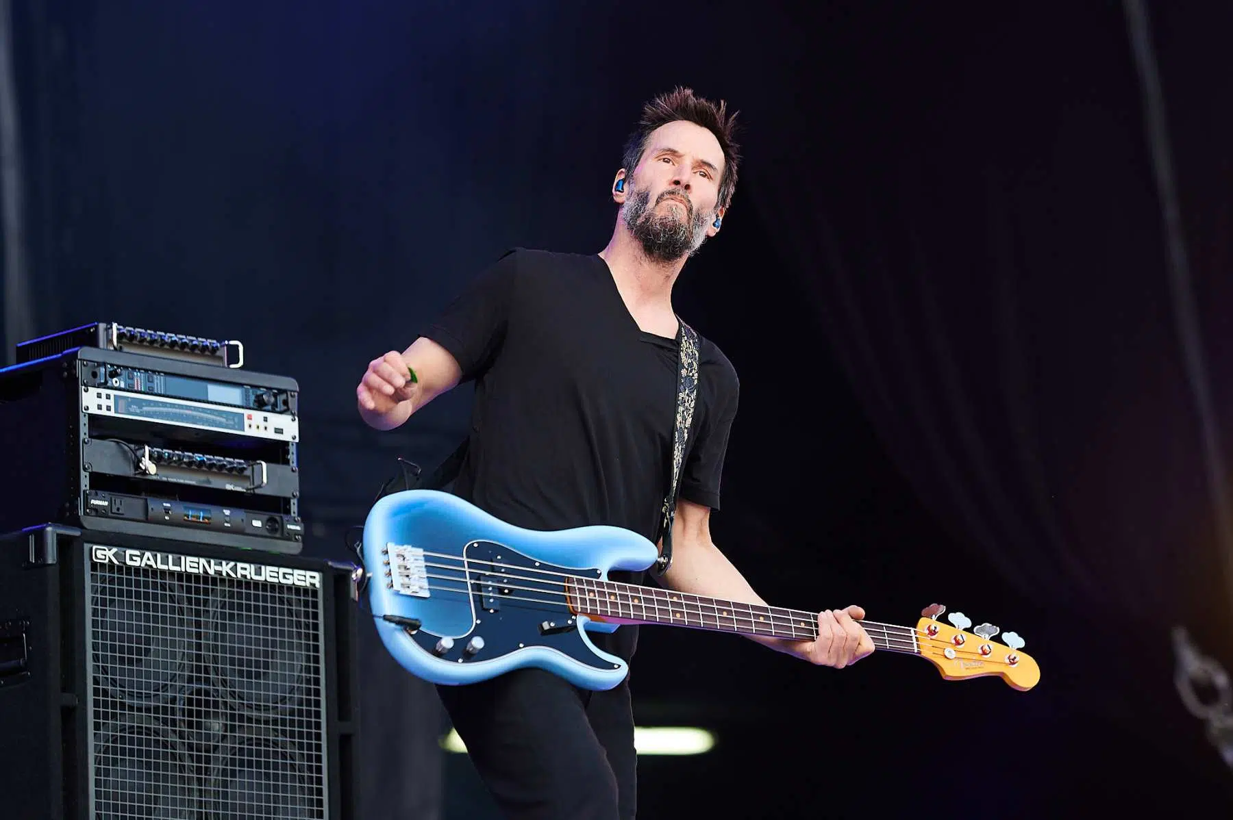Der Hollywood Schauspieler ist nicht nur Bassist, sondern auch Gründungsmitglied der 1991 gegründeten Formation. Seine Fans wissen, was er in seinen Filmen mit nur einem Bleistift anstellen kann, dass er aber auch Bass-Gitarre spielen kann wussten nur die wenigsten. Fast schon etwas schüchtern oder vielleicht auch einfach nur bescheiden stand er mit seinen Bandkollegen Robert Mailhouse und Bret Domrose am Nachmittag im Park und ging ganz in seiner Musik auf.