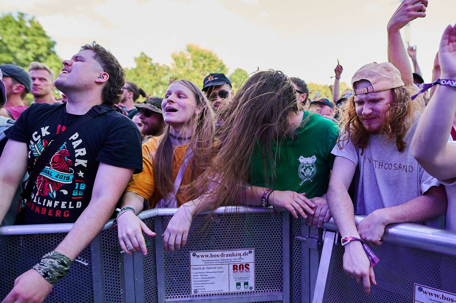 Nicht nur im Freien, in der strahlenden Sonne, schwitzten die Festival Besucher. Auf der Orbit Stage in der Halle heizten am Freitag auch jede Menge herausragende Acts den Fans ein. Neben TEAM SCHEISSE oder TRETTMANN spielten auch PINKSHIFT und UNDEROATH.