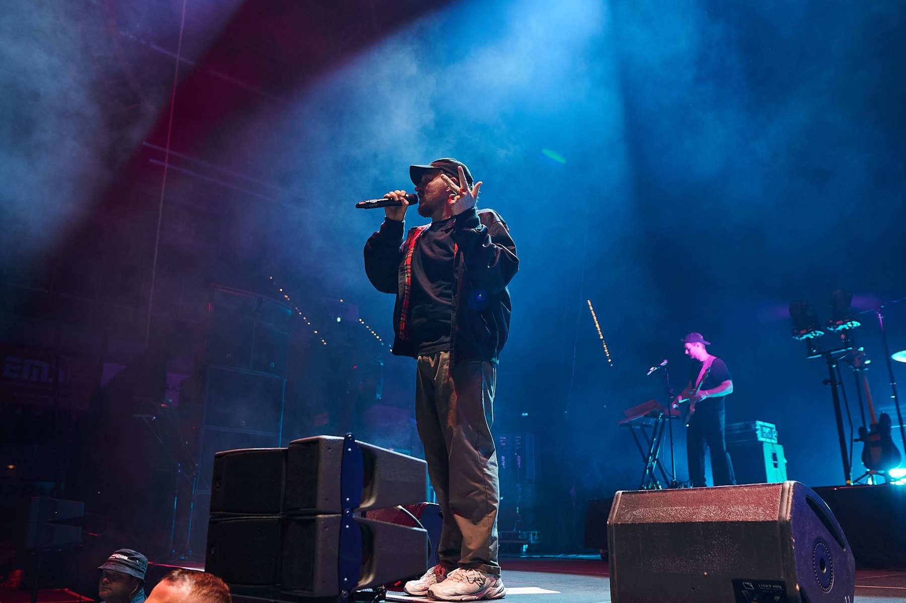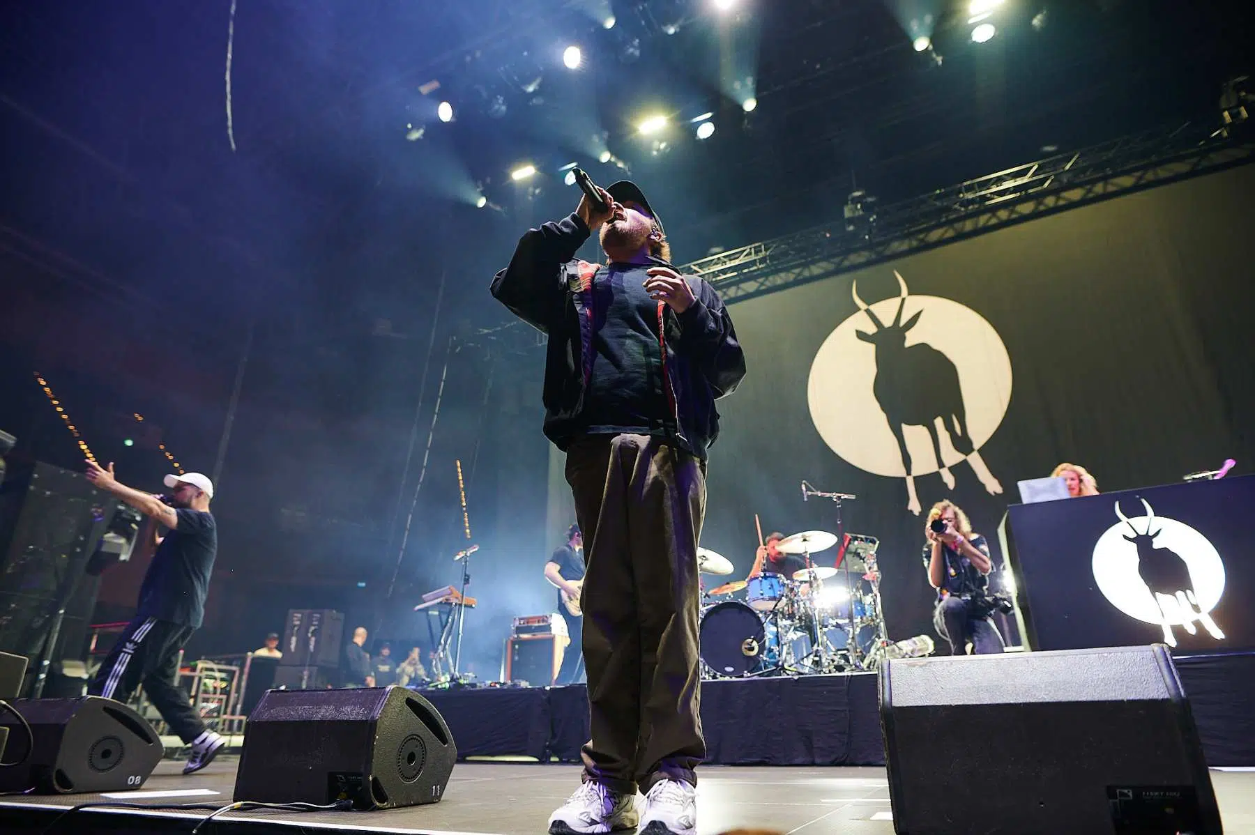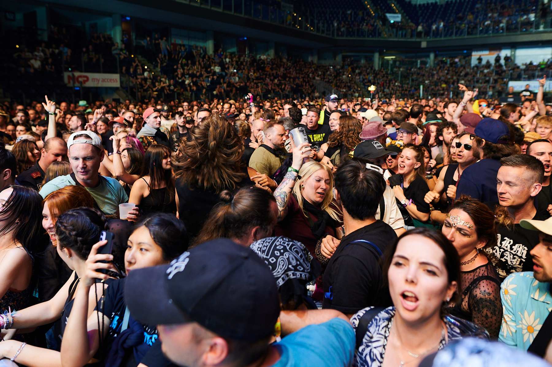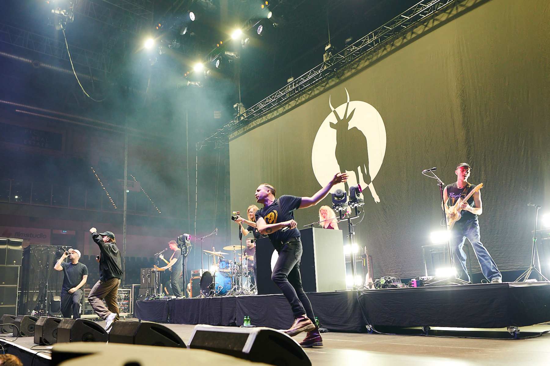Einen Abschluss mit Botschaft lieferte die deutsche Hip-Hop-Band ANTILOPEN GANG. Danger Dan, Panik Panzer und Koljah werden sich 2024 zu ihrem 15-jährigen Geburtstag in Punkrock Gefilde vorwagen und gleich zwei Alben veröffentlichen. Halb Rap, halb Punk soll es werden. Und irgendwie passt das auch zu ihnen, wie die drei unter Beweis stellten. Songs wie „Muttertag“ und „Pizza“ wurden lautstark mitgerappt und es wurde heftig gesprungen und getanzt. Die Halle tobte und feierte ausgelassen. Auch wenn gesellschaftspolitische Themen angesprochen werden, durfte der Spaß nicht zu kurz kommen. Ein gelungener Abschluss für einen fantastischen ersten Tag.