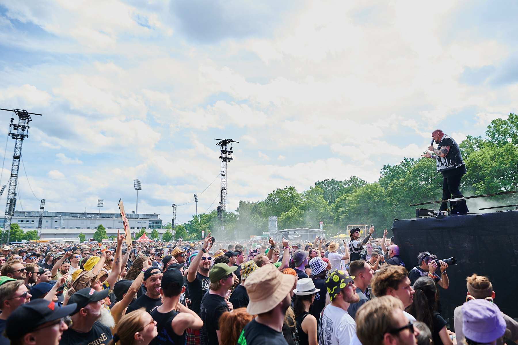 H-BLOCKX eröffneten den Tag mit einer Performance, die sich gewaschen hat. Die Crossover-Pioniere feierten das 30-jährige Jubiläum ihres Debütalbums „Time To Move“ und spielten Klassiker wie „Risin’ High“ und „Move“. Die Band zeigte, dass sie auch nach all den Jahren nichts von ihrer Bühnenpräsenz und musikalischen Kraft verloren hat und sorgte schon mittags, für viele Parkrocker*innen kurz nach dem Aufstehen, für wilde Moshpits und jede Menge Crowdsurfer.