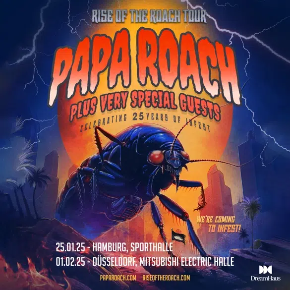 Papa Roach werden den Start des Jahres 2025 mit 2 großen Headline-Shows in Hamburgund Düsseldorf feiern. Bei den Shows wird die Band mit ihrer bisher größten Produktion eine Reise durch ihren riesigen Musikkatalog unternehmen und das 25-jährige Jubiläum des legendären Debütalbums INFEST feiern. Special Guests für die wegweisende Tour werden zu einem späteren Zeitpunkt bekannt gegeben. Vorverkauf ab 3. Juli und Allgemeiner Verkauf ab 5. Juli auf eventim.de.