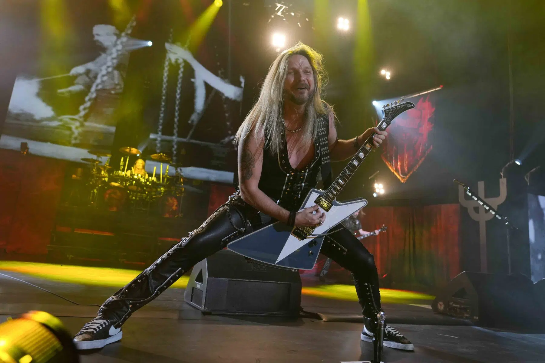 Nach einer kurzen Umbaupause war es endlich soweit: Judas Priest, die unbestrittenen Meister des Heavy Metal, betraten die Bühne. Die Menge explodierte, als die ersten Töne von „Panic Attack“ erklangen. Rob Halford, die legendäre Stimme von Judas Priest, zeigte sich in Bestform und meisterte jede Note mit beeindruckender Präzision und Kraft.