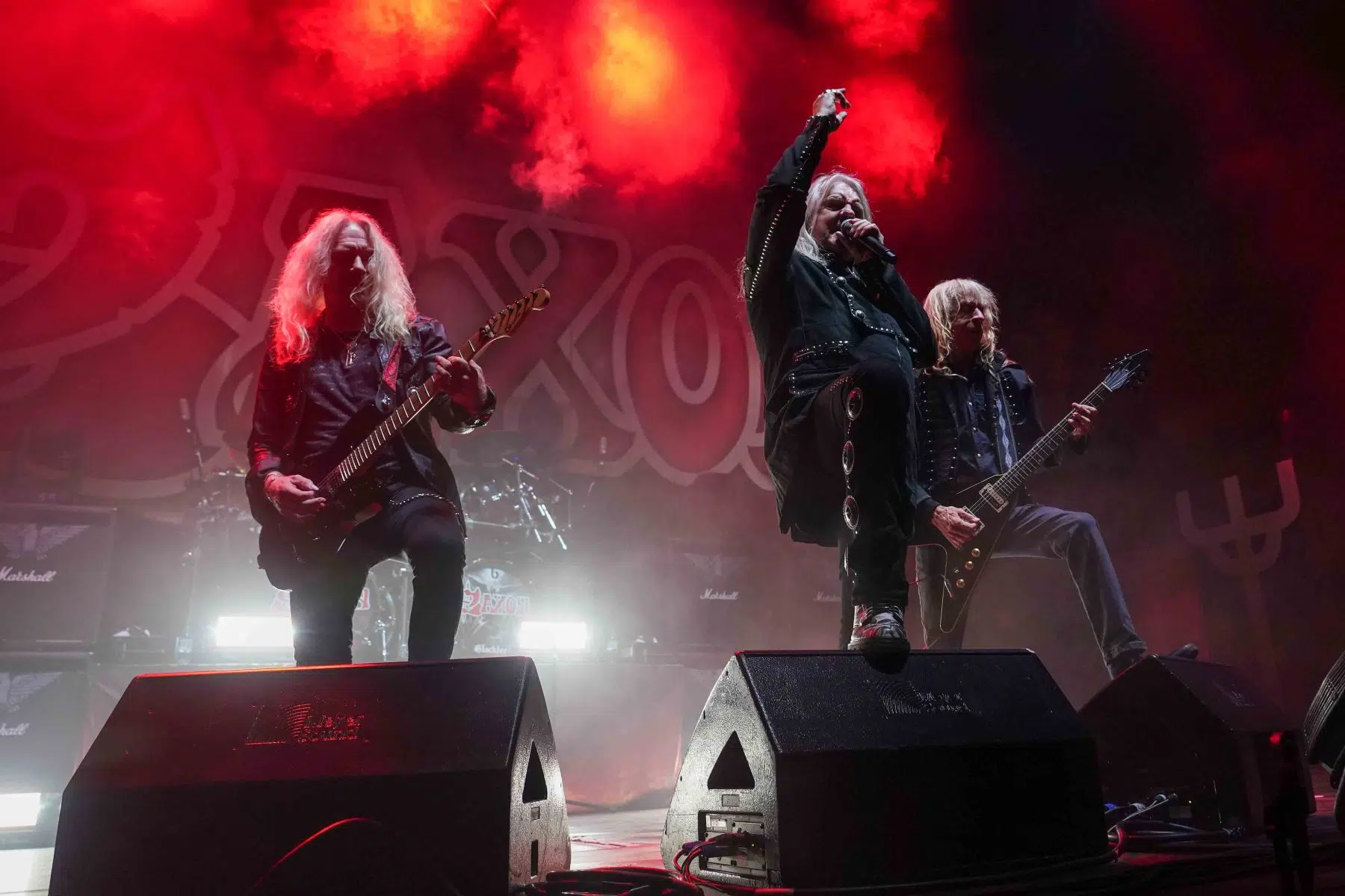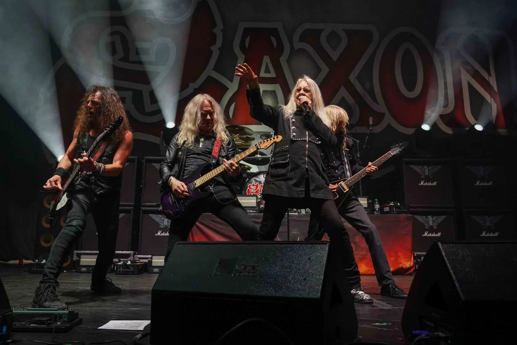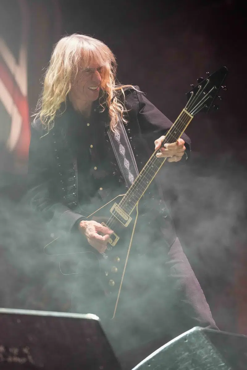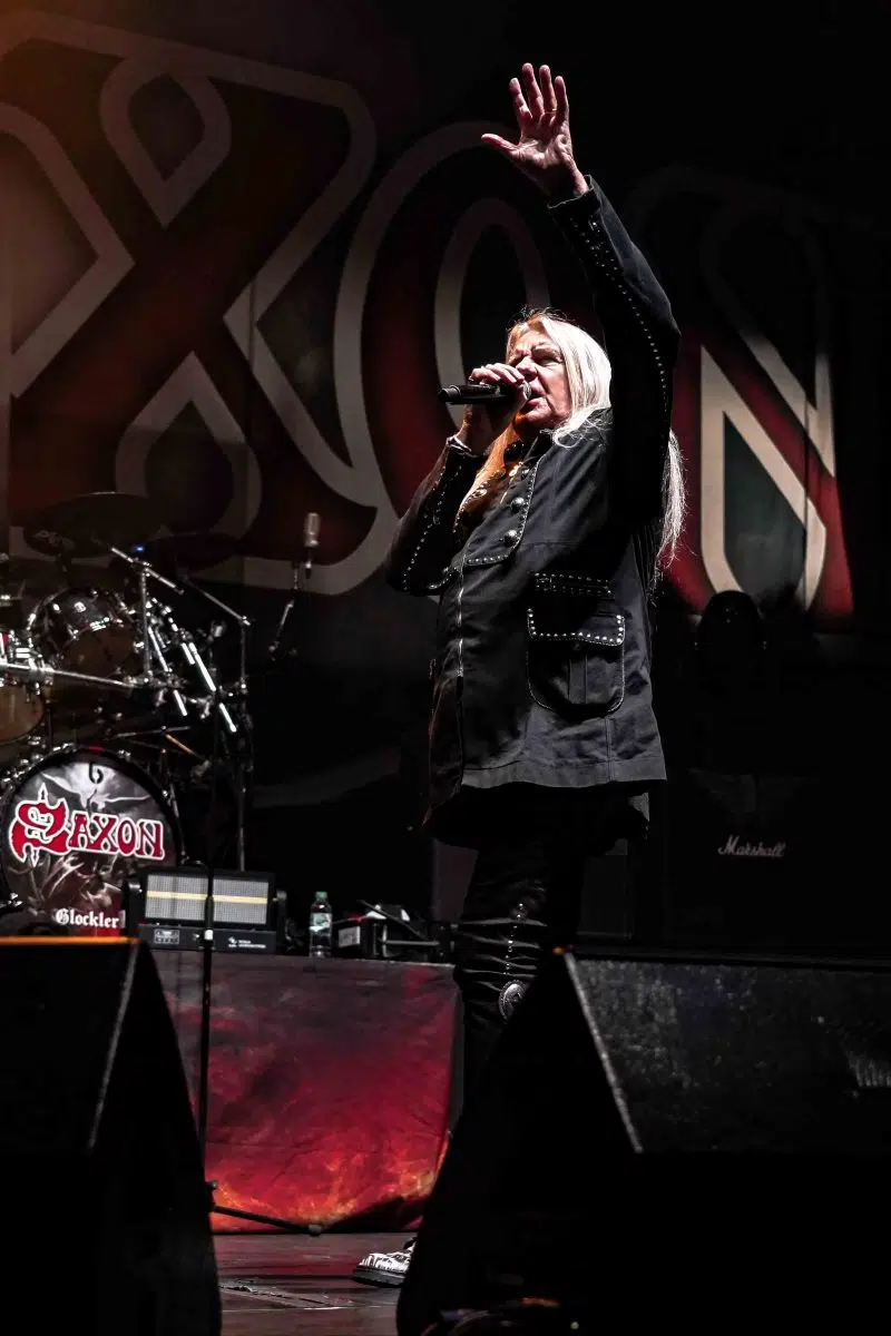 Die Spannung war greifbar, als die Lichter der SAP Arena gedimmt wurden und Saxon die Bühne betrat. Die Band eröffnete ihren Set mit „Hell, Fire and Damnation“ und legte damit den Grundstein für eine energiegeladene Show. Biff Byford, der charismatische Frontmann der Band, wusste das Publikum sofort in seinen Bann zu ziehen. Mit Klassikern wie „Motorcycle Man“ und „Power and the Glory“ brachte Saxon die Menge zum Kochen. „Heavy Metal Thunder“ und „Crusader“ waren weitere Höhepunkte, bei denen die Fans jede Note mitsangen.