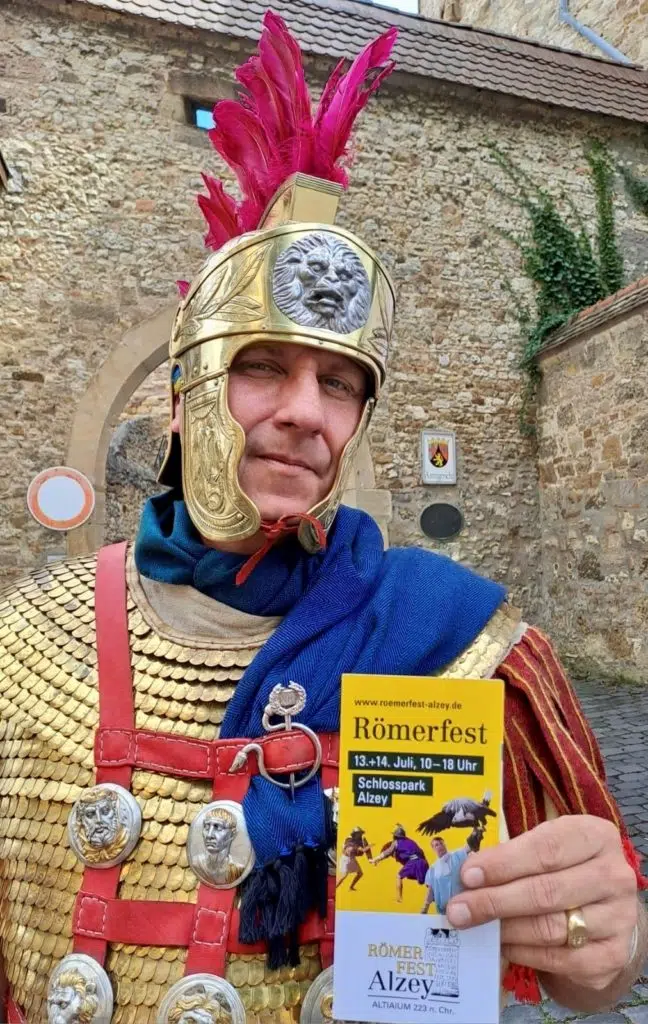 Mit über 130 Darstellerinnen und Darstellern, spektakulären Vorführungen vom Gladiatorenkampf bis zu Belagerungsgeräten und tiefen, authentischen Einblicken in das Leben vor rund 2.000 Jahren wurden die Gäste aus nah und fern vor der beeindruckenden Kulisse des Alzeyer Schlosses in die Welt der Römer entführt. Zwei Tage lang drehte sich beim zweiten Alzeyer Römerfest alles um Römer, Legionäre und den Alltag der Menschen zur Zeit der ersten urkundlichen Erwähnung des Vicus Altiaia.