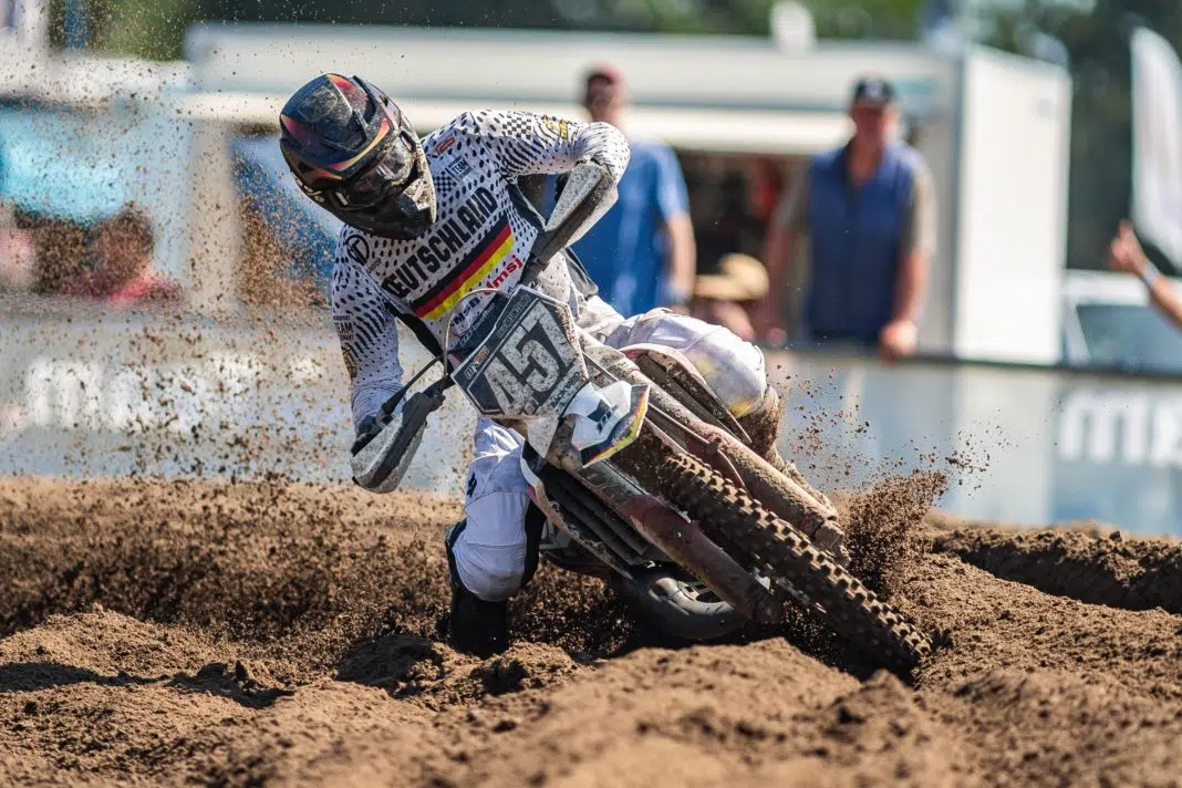 München. Am vergangenen Wochenende (20./21. Juli) ging es für die Deutschen Junioren Motocross-Meisterschaften der Klassen 125 und 250 ccm in den hohen Norden auf die Sandpiste des MC Wolgast e. V. „Am Ziesa Berg“ beendeten die DMX 125-Spitzenreiter Paul Neunzling (Gasgas) und Finn Lange (KTM GST Berlin Racing/ADAC Hansa MX Junior Team) das Wochenende punktgleich. In der Tageswertung ging der Sieg an Neunzling, der auch die Meisterschaft weiterhin anführt. In der DMX 250 vergrößerte Peter König (D/KTM Sarholz Racing Team) mit zwei deutlichen Laufsiegen seine Tabellenführung.