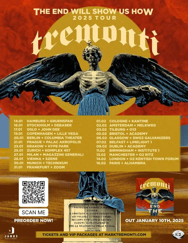 Mark Tremonti ist derzeit mit den kürzlich wiedervereinigten Creed auf US-Tour. 2025 wird TREMONTI mit The End Will Show Us How rund um den Globus touren. Weitere Informationen gibt es hier: MarkTremonti.com