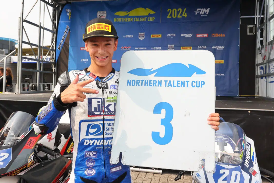 Assen. Die sechste Runde des Northern Talent Cup führte die Nachwuchsfahrer an diesem Wochenende zurück in die Niederlande auf den historischen TT Circuit in Assen und bot jede Menge Abwechslung. Beide Rennsiege am Samstag und am Sonntag gingen an den Dänen Julius Frellsen. Währenddessen bekamen die deutschen Dauerstarter etwas Verstärkung. Fynn KRatochwil und Anina Urlaß feierten einen starken Einstand. Kratochwil schaffte auf Anhieb einen Podestplatz.