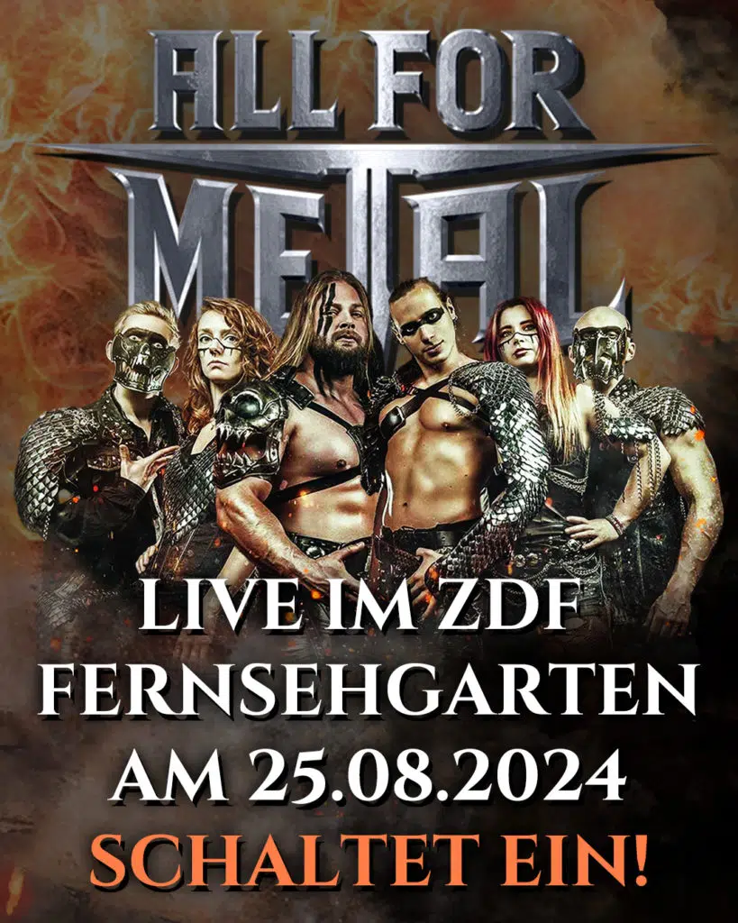 Während das „Gods Of Metal (Year Of The Dragon)“-Erscheinen dieses Wochenende im Rahmen zweier höchstexklusiver Cruise-Releaseshows in Hamburg zelebriert wird, wirft ein weiteres Highlight seinen Schatten voraus: ALL FOR METAL werden im deutschen Fernsehen auftreten und am Sonntag, den 25. August, im ZDF-Fernsehgarten (12.00 – 14.10 Uhr) zu sehen sein. Schaltet HIER ein und schlagt die TV-Schlacht gemeinsam mit der Truppe!