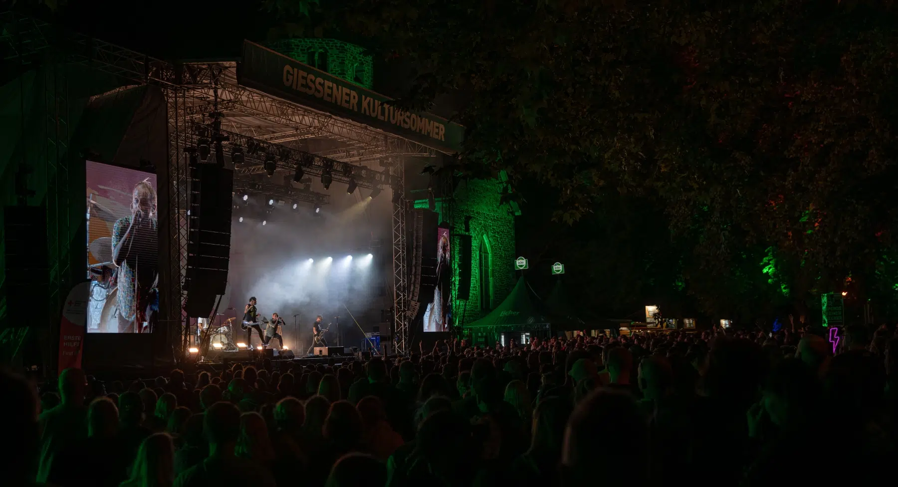 Die Atmosphäre im Kloster Schiffenberg war einfach magisch. Die historische Architektur des Klosters verlieh dem Konzert eine besondere Note und schuf eine einzigartige Verbindung zwischen der Musik und dem Ort. Die Fans waren begeistert und feuerten die Band lautstark an, was zu einer interaktiven und elektrisierenden Stimmung führte. Es war deutlich zu spüren, wie sehr sich die Band und das Publikum gegenseitig beflügelten, und diese positive Energie war bis weit nach dem letzten Song zu spüren.