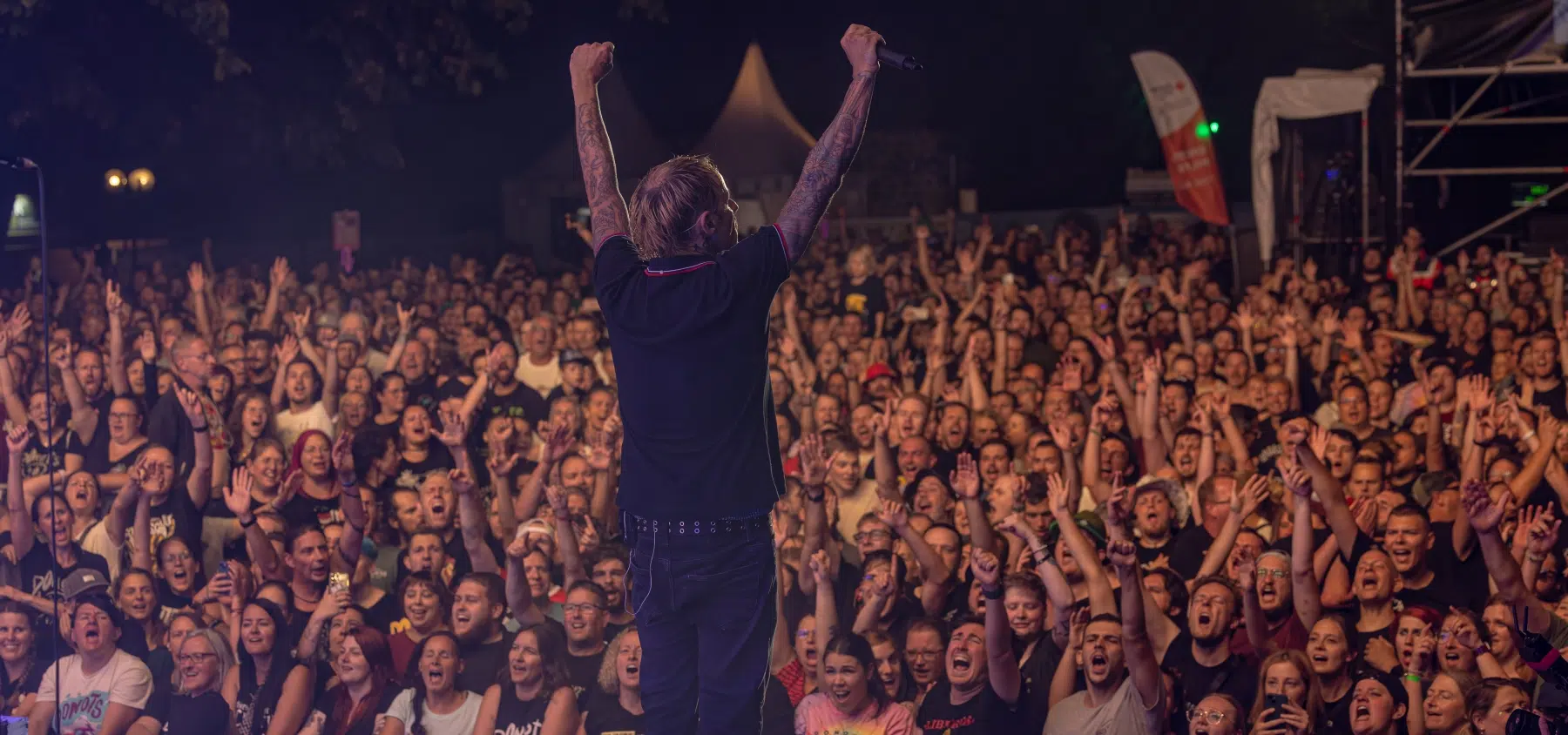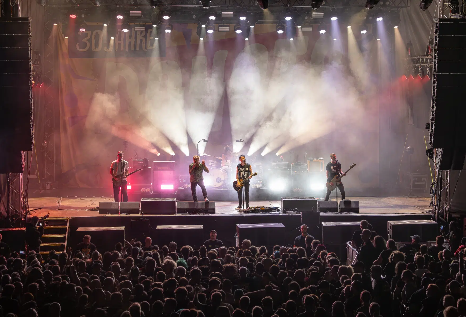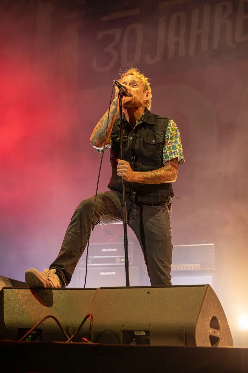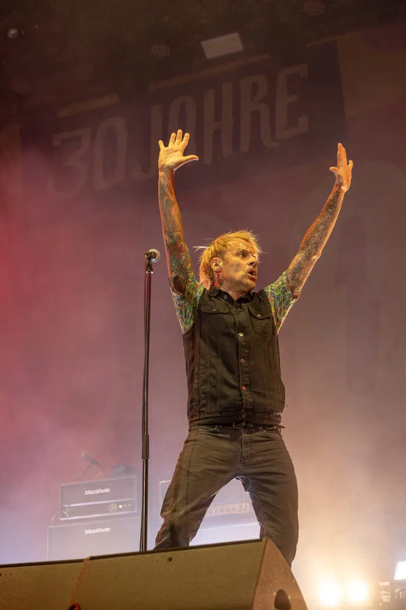 Als die Donots schließlich die Bühne betraten, war die Vorfreude greifbar. Die Band, bekannt für ihre mitreißenden Live-Auftritte, enttäuschte nicht. Mit einem Set, das sowohl Klassiker als auch neue Hits umfasste, bewiesen sie erneut, warum sie zu den beliebtesten Bands des deutschen Punkrock zählen. Ihre Performance war energetisch und authentisch, jeder Song wurde mit einer Intensität und Leidenschaft dargeboten, die das Publikum von Anfang bis Ende mitriss.