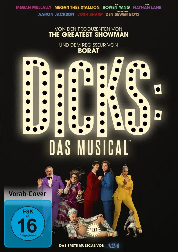 Mit DICKS: DAS MUSICAL adaptierten Aaron Jackson und Josh Sharp ihr gnadenlos verdorbenes off-Broadway Musical „Fucking Identical Twins” und arbeiteten mit Comedy-Legend Larry Charles („Seinfeld“, „Borat”, „Der Diktator“) als Regisseur und den Produzenten von „Greatest Showman“ zusammen. Entstanden ist ein herrlich zügelloser, amüsanter und queerer Film entgegen aller Spießigkeiten und Normen, der mit Megan Mullally („Will & Grace“), Nathan Lane („The Producers“, „Mäusejagd“) und Megan Thee Stallion („Birds of Prey“) auch in den Nebenrollen prominent besetzt ist.