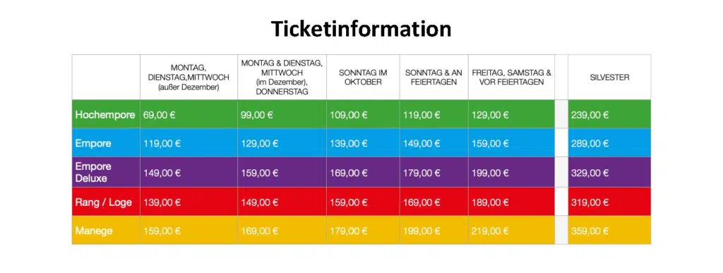 Die neue Palazzo Saison startet bereits ab dem 26. Oktober. Tickets für Show und Menü sind ab 69€ unter der Hotline 01805 – 60 90 30* erhältlich. Infos und Buchung unter www.palazzomannheim.de. Die Show beginnt um 19 Uhr, Einlass ab 17.30 Uhr, sonntags Showstart 18 Uhr, Einlass 16.30 Uhr. Montags sowie am 24.12.24 und 1.1.25 ist spielfrei.