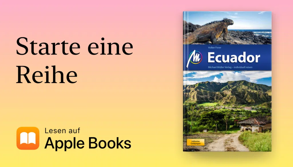 Erkunden Sie den Vulkan Tungurahua oder den Vulkan Cotopaxi im gleichnamigen Nationalpark. Entdecken Sie Natur und Tiere im tropischen Regenwald des Amazonasgebiets. Im Süden Ecuadors führt die ganz Südamerika durchziehende Panamericana durch ein 500 Kilometer langes Hochbecken, von Alexander von Humboldt „Avenida der Vulkane“ getauft. Reisen Sie bei einer Galapágos-Kreuzfahrt auf Darwins Spuren zu den 1000 Kilometer vor der Küste gelegenen Galápagosinseln . Auf dem Weg in die Provinz Esmeraldas lohnt ein Besuch eines der größten Viehmärkte Lateinamerikas im quirligen Santo Domingo de los Tsáchilas. Staunen Sie über Buckelwale vor Puerto López. Erkunden Sie die Zuflüsse des Amazonas im Osten. Für all das und viel, viel mehr gibt unserer Reiseführer die besten Tipps – schließlich hat sie der Autor vor Ort selbst getestet.