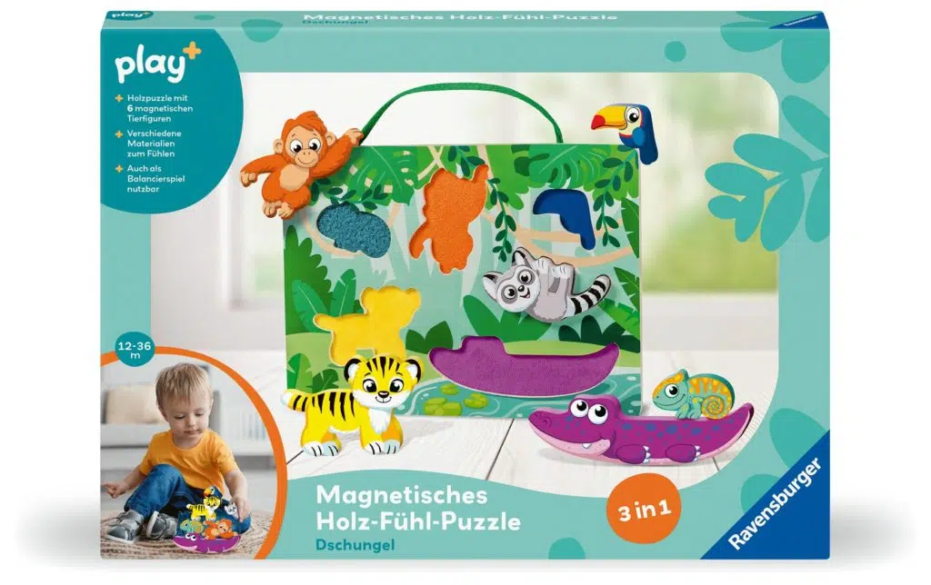 Play+: Magnetisches Holz-Fühl-Puzzle: „Dschungel“,
