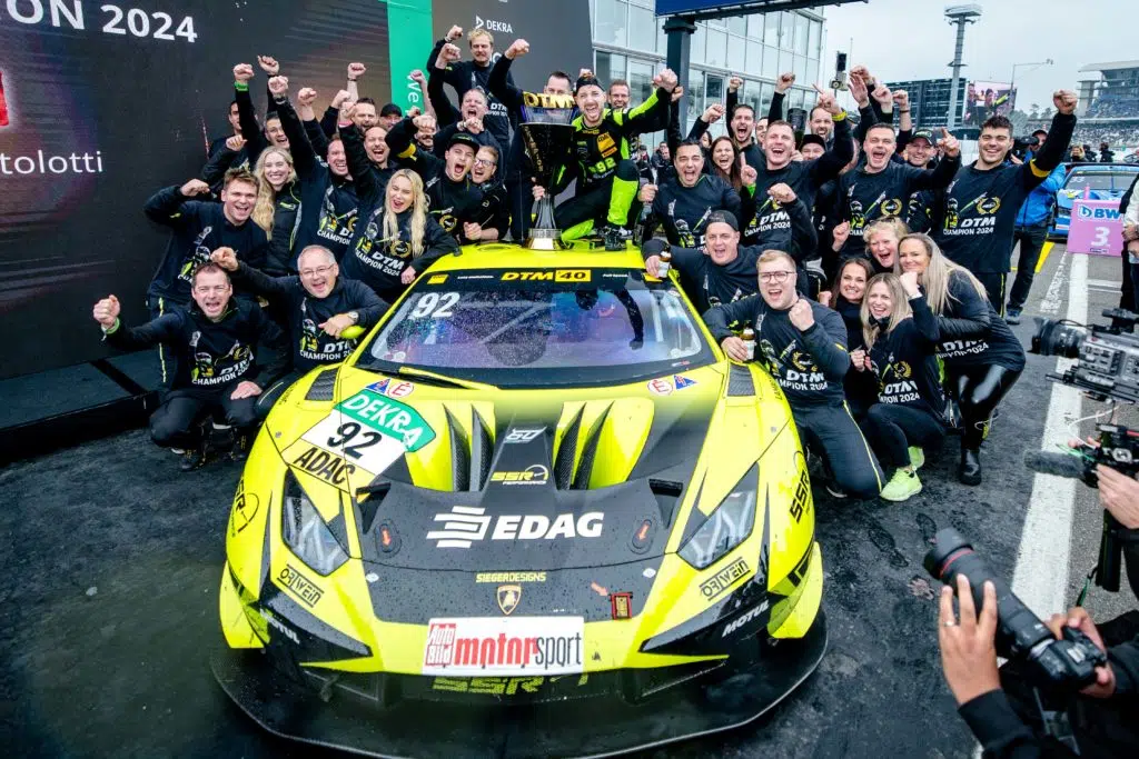 München. Mit diesem Erfolg hat sich Mirko Bortolotti einen Lebenstraum erfüllt: Der Lamborghini-Werkspilot holte beim Saisonfinale in Hockenheim erstmals in seiner Karriere den DTM-Titel. „Das ist der schönste Tag in meinem Leben. Vor zehn Jahren hat mir Lamborghini eine Chance gegeben und seitdem immer an mich geglaubt. Ich erinnere mich noch an den verlorenen Titelkampf der vergangenen Saison, als ich einige Tränen vergossen habe. Umso schöner fühlt sich die Meisterschaft an“, sagte ein überglücklicher Bortolotti nach der Siegerehrung. Die Galavorstellung des Italieners sorgte gleichzeitig für die erste Meistertrophäe in der 40-jährigen DTM-Geschichte für die Luxusmarke Lamborghini aus Sant’Agata Bolognese. Auch Bortolottis Team SSR Performance verbuchte einen neuen Meilenstein – für den Rennstall aus München ist der Titel der größte Erfolg seit der Meistersaison im ADAC GT Masters 2020.